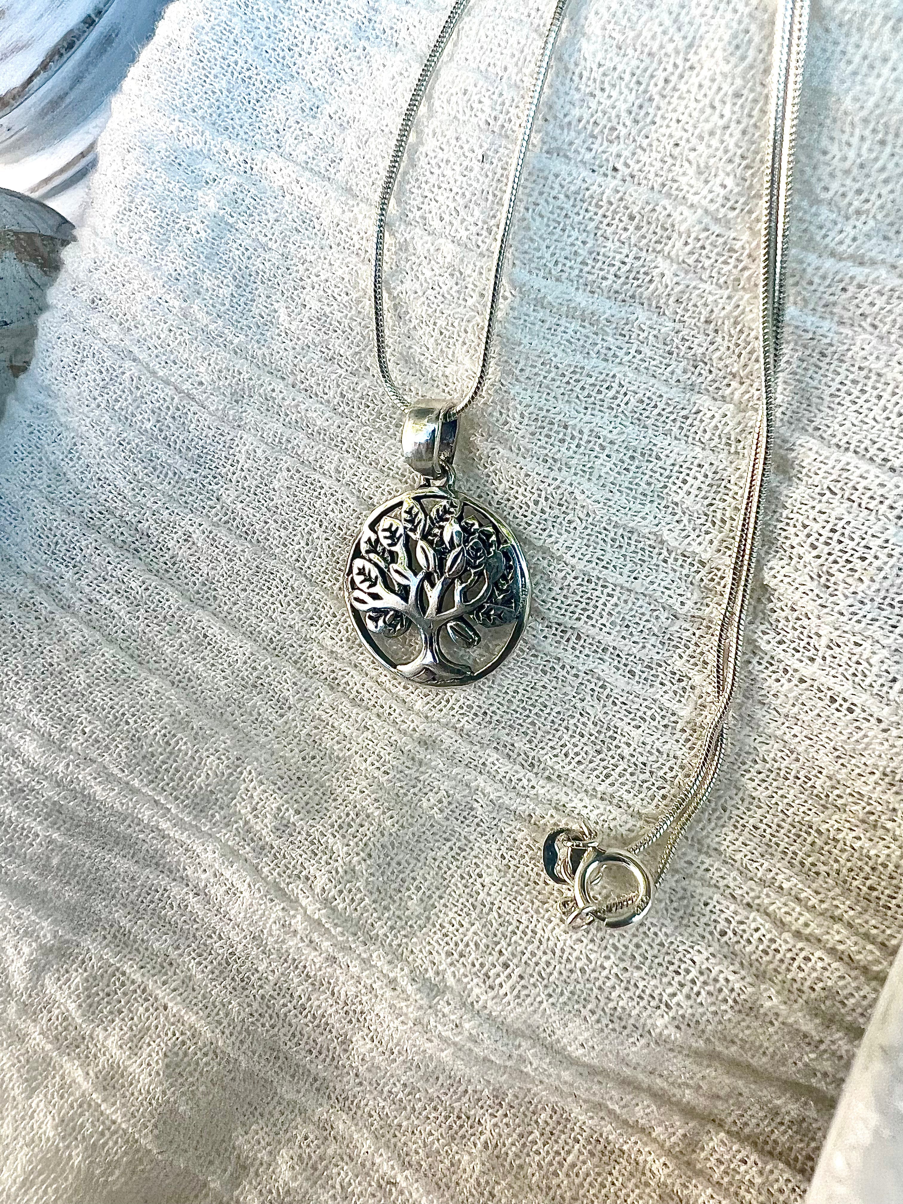 Complete your look with this Sterling Silver Tree Of Life Pendant! The Tree of Life is a symbol of growth, strength, wisdom & protection. Crafted and polished in genuine 925 sterling silver, our tree of life pendant comes with a small sterling silver chain. Perfect for wearing on any occasions. This Tree of life charm is classy enough to make you stand out from others. Stunningly simple on its own, also wonderful layered with another necklace! Ethically made with love & intention💗