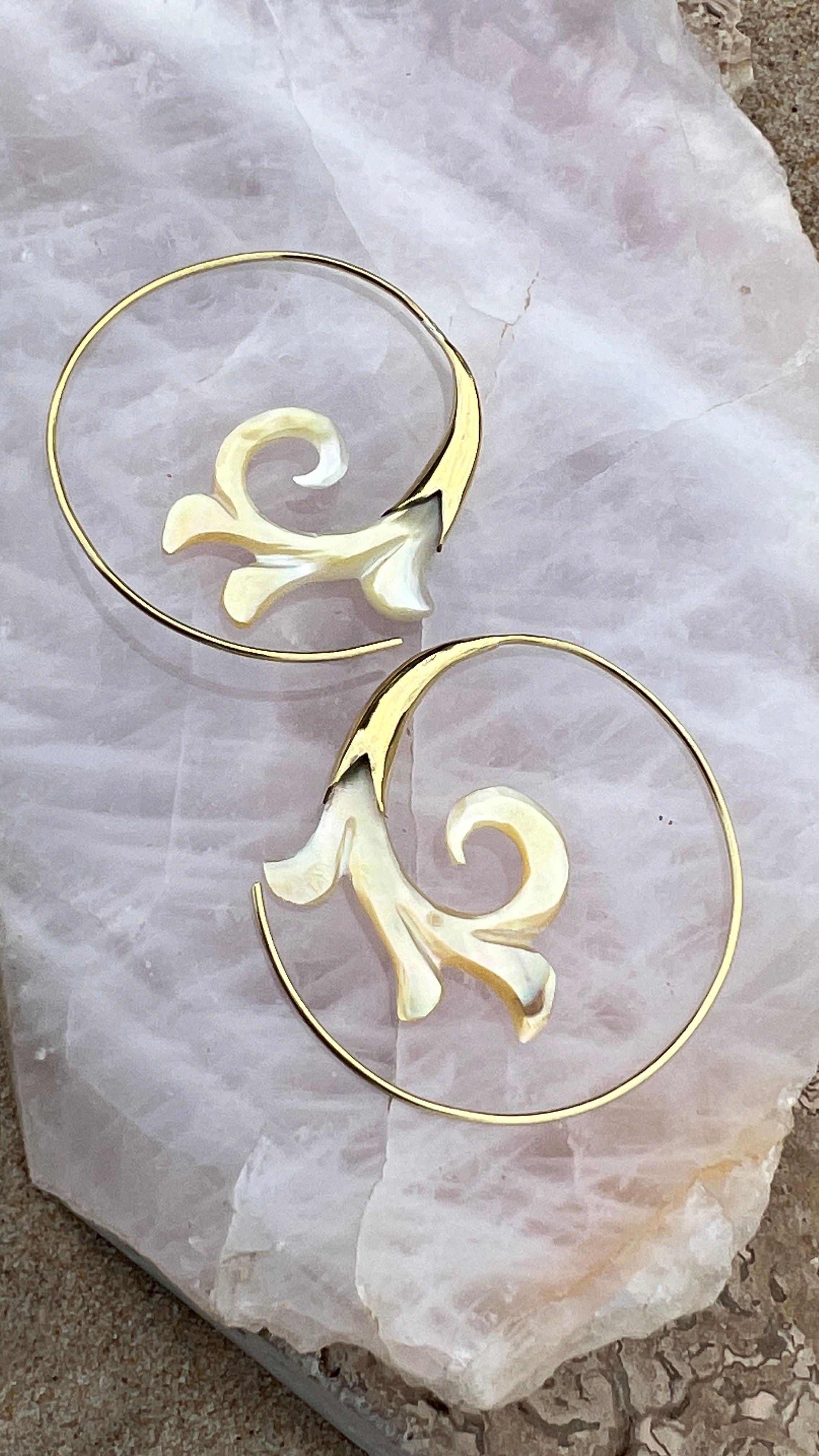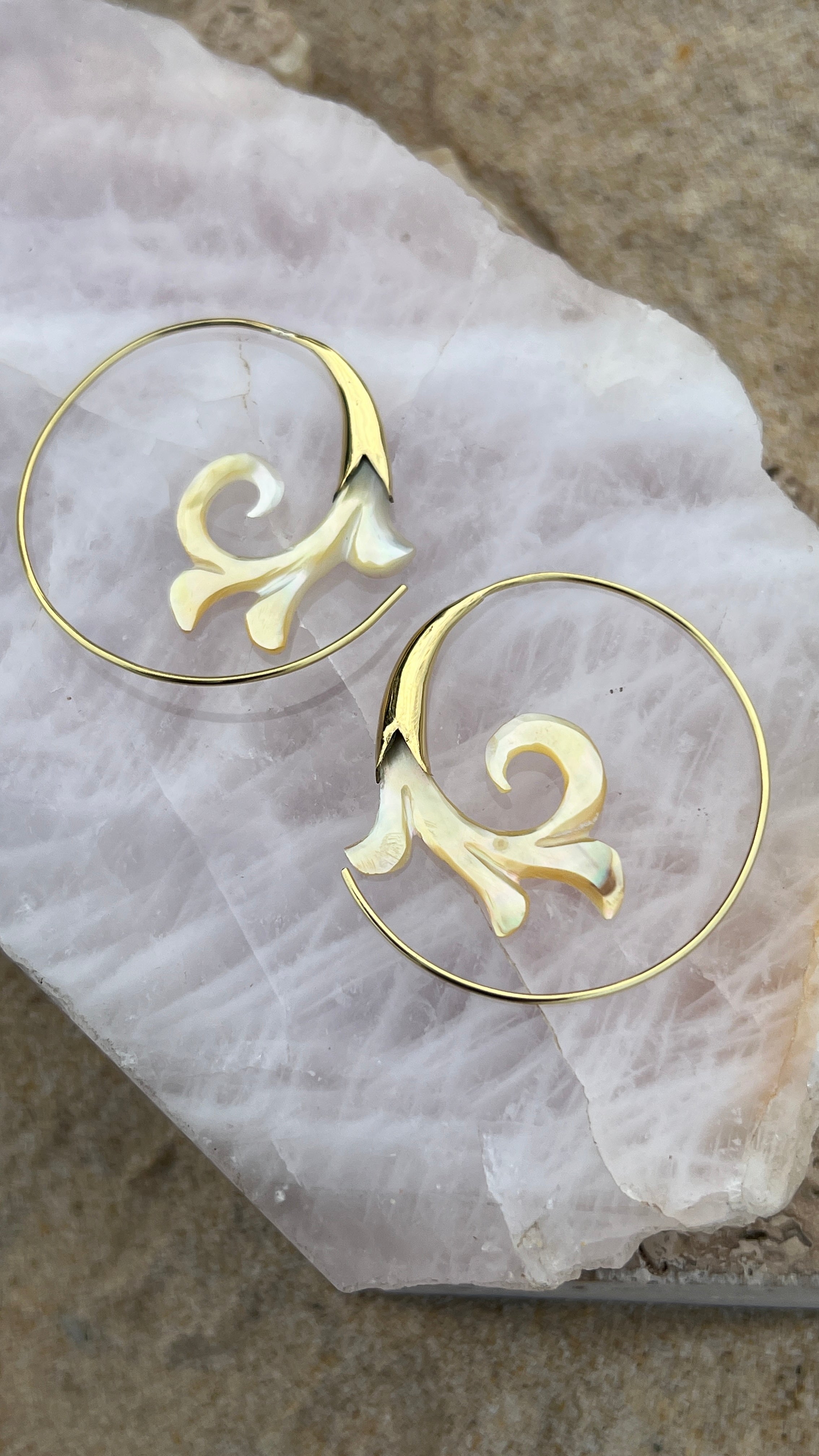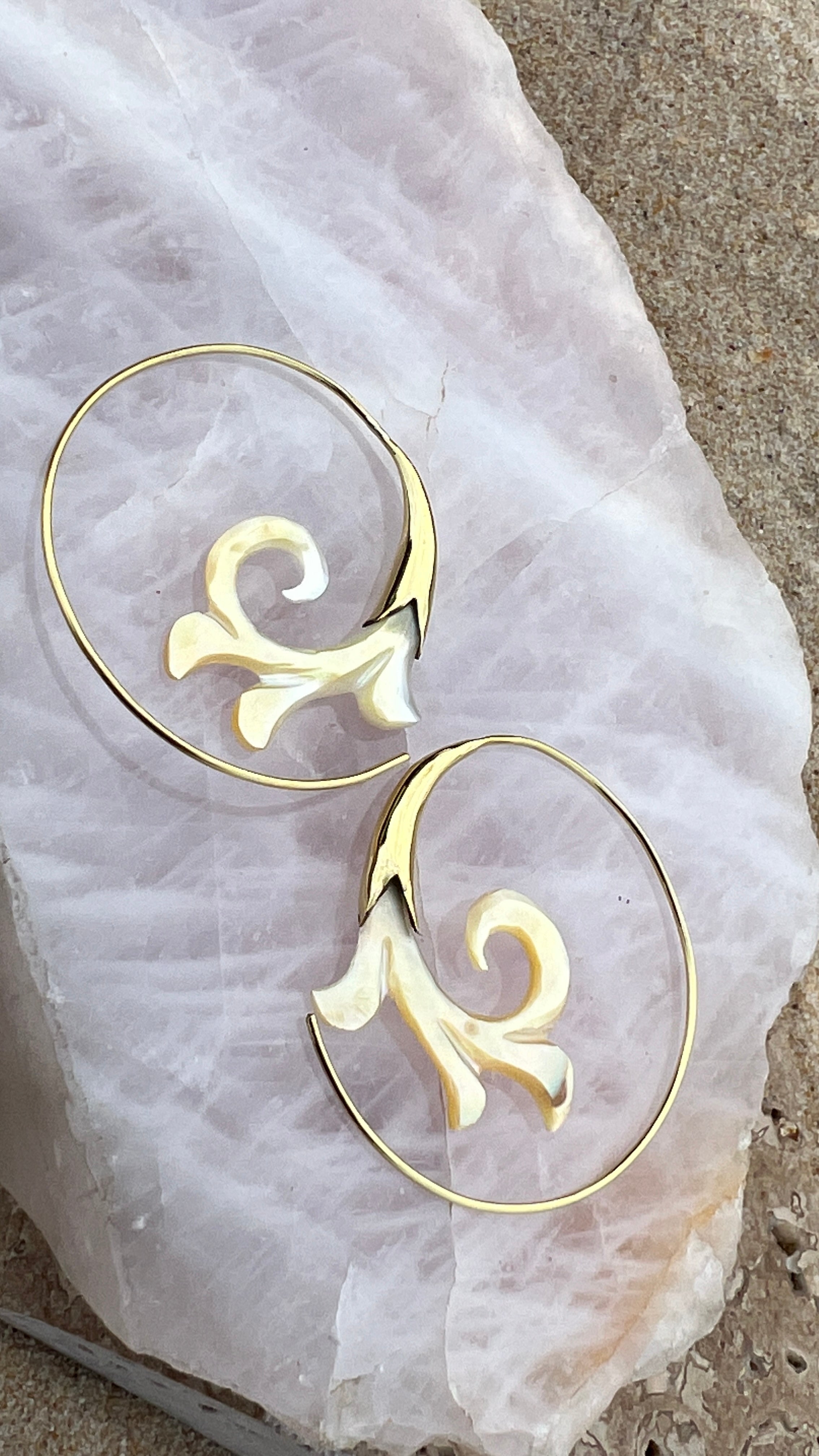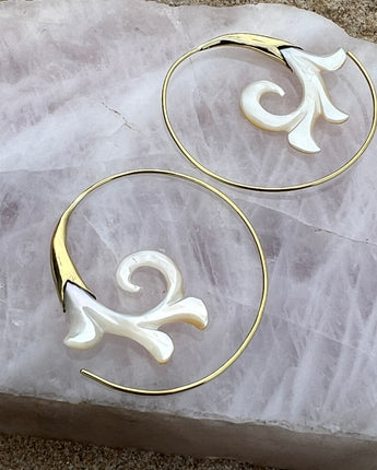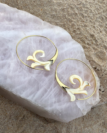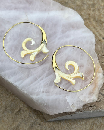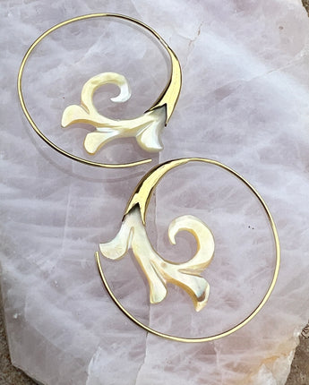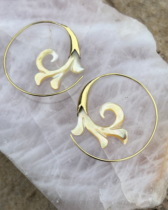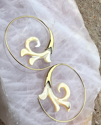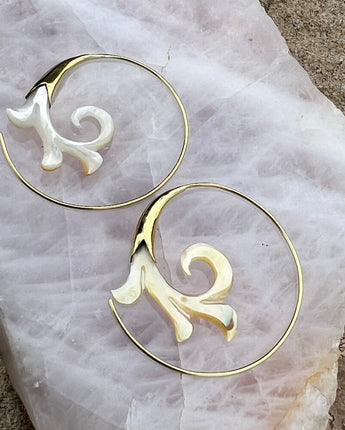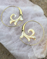Hand Carved Shell & Brass Gabriel Earrings