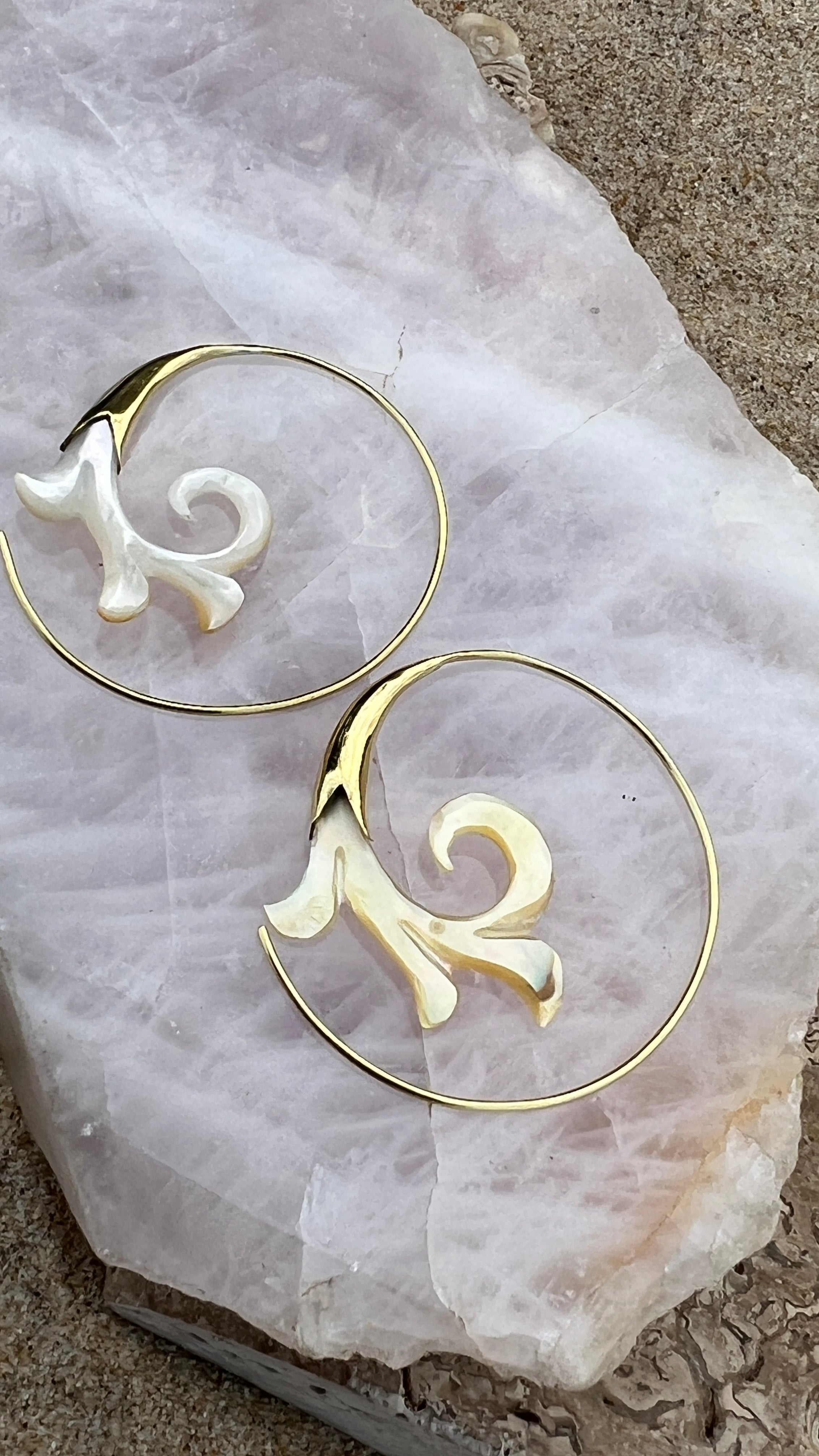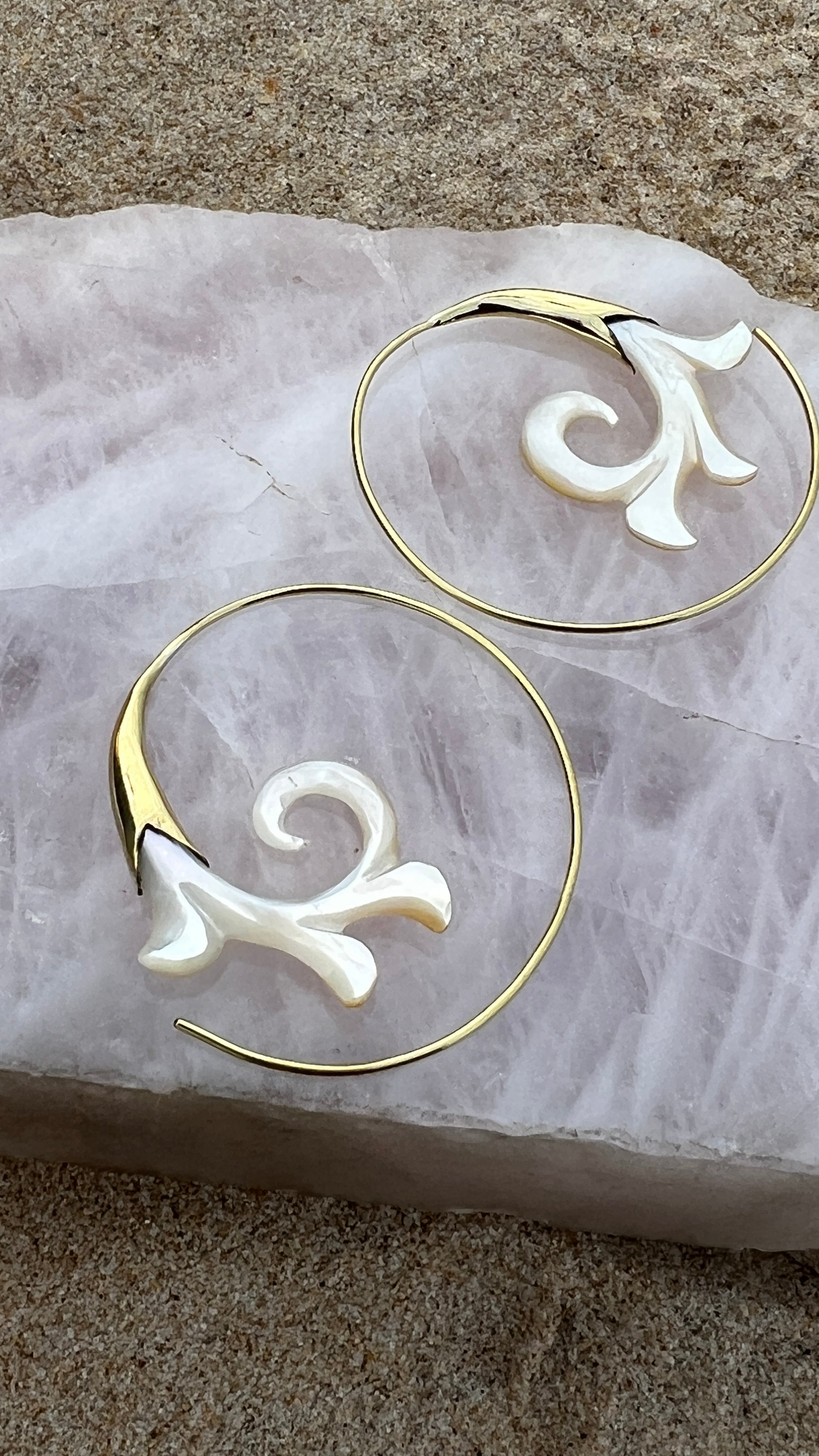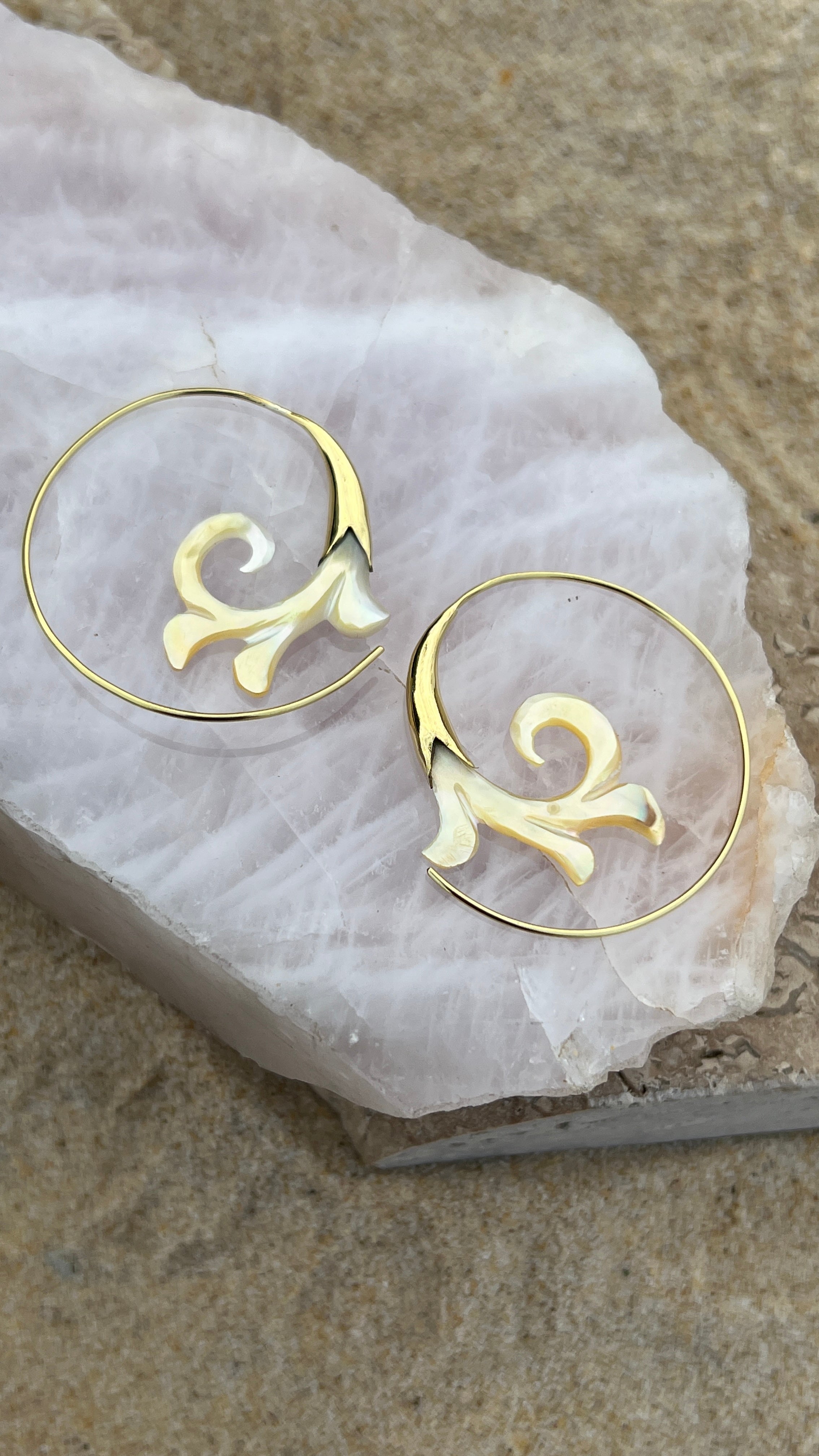 Hand Carved Shell & Brass Gabriel Earrings
