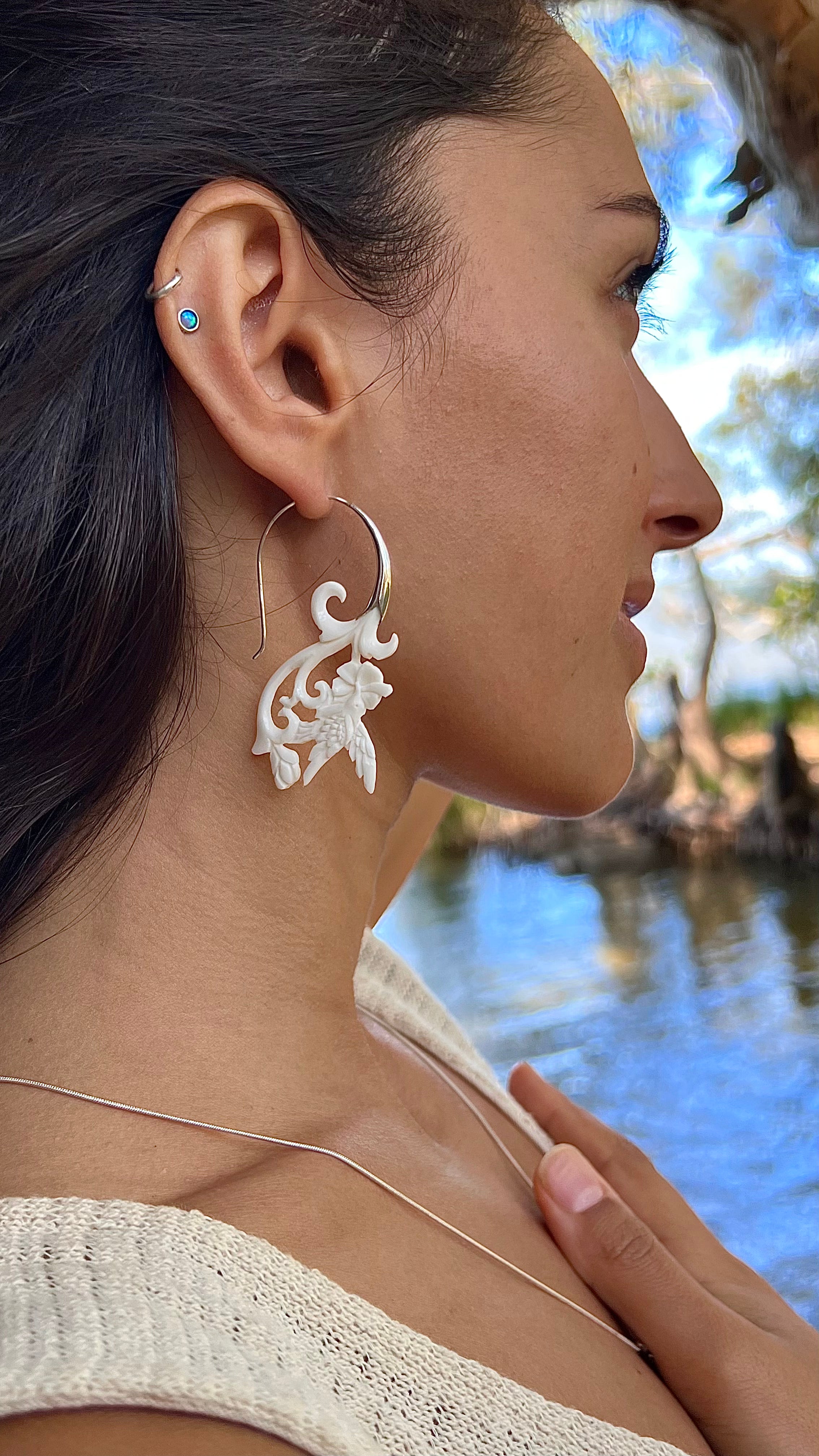 These exquisite Hummingbird Earrings combine ethically sourced buffalo bone with 925 sterling silver accents, blending natural soul with timeless refinement. The hummingbird — a symbol of joy and presence — brings a sense of lightness and meaning to your adornment.