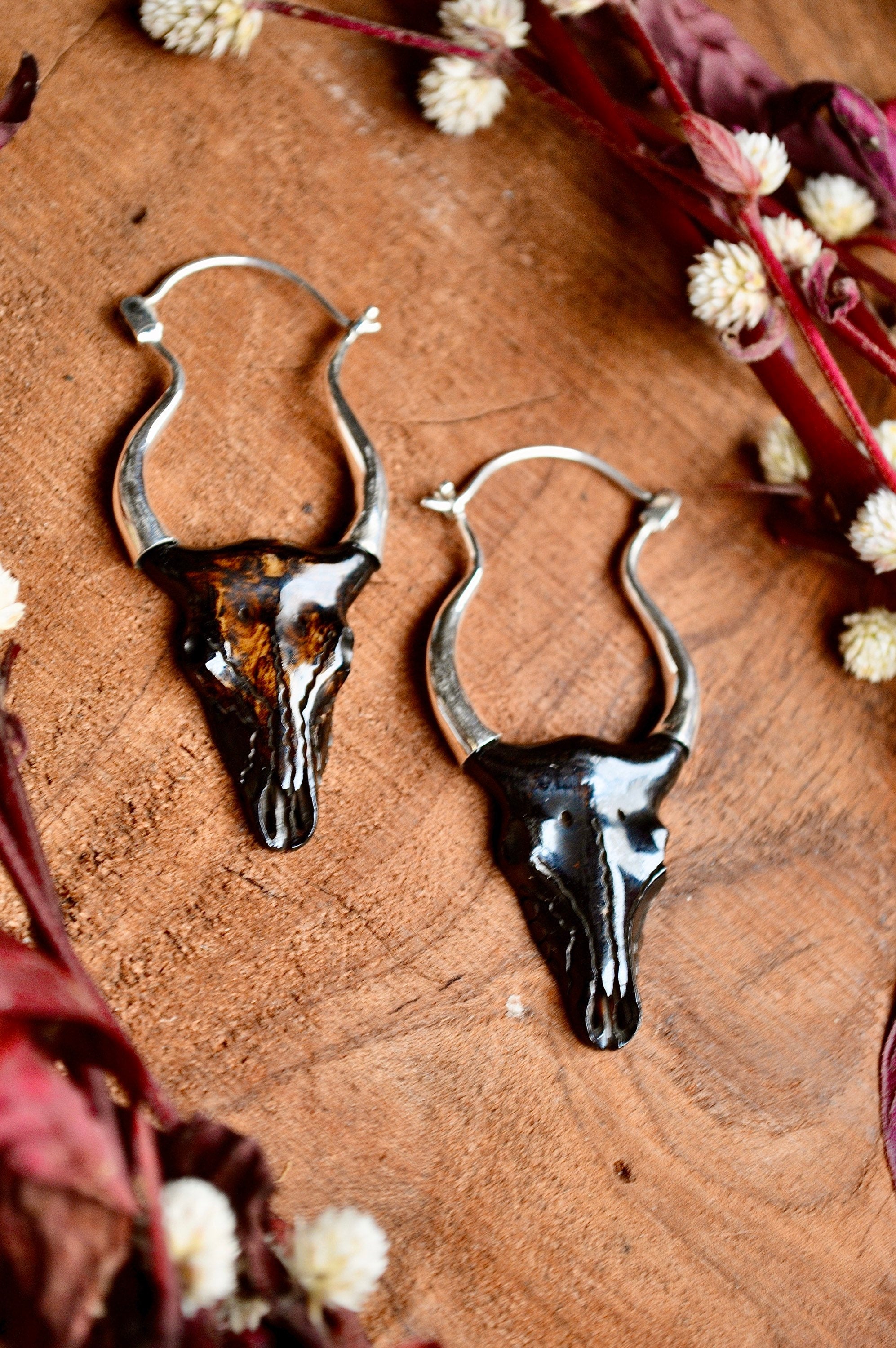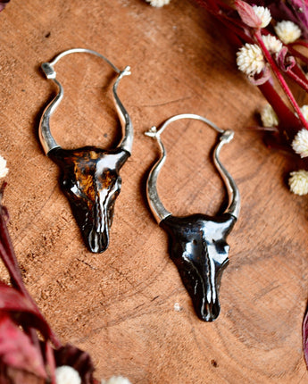 These stunning and unique designs were lovingly handcrafted from ethically sourced buffalo bone and 925 sterling silver.  These statement earrings were made for the bold at heart!  Whether you're honouring yourself with a walk through nature or headed to a festival with friends, may these powerful pieces inspire you to be bold!        The buffalo skull symbolises abundance, provision, strength, stability and prosperity.          Hand carved with the intention of abundance.