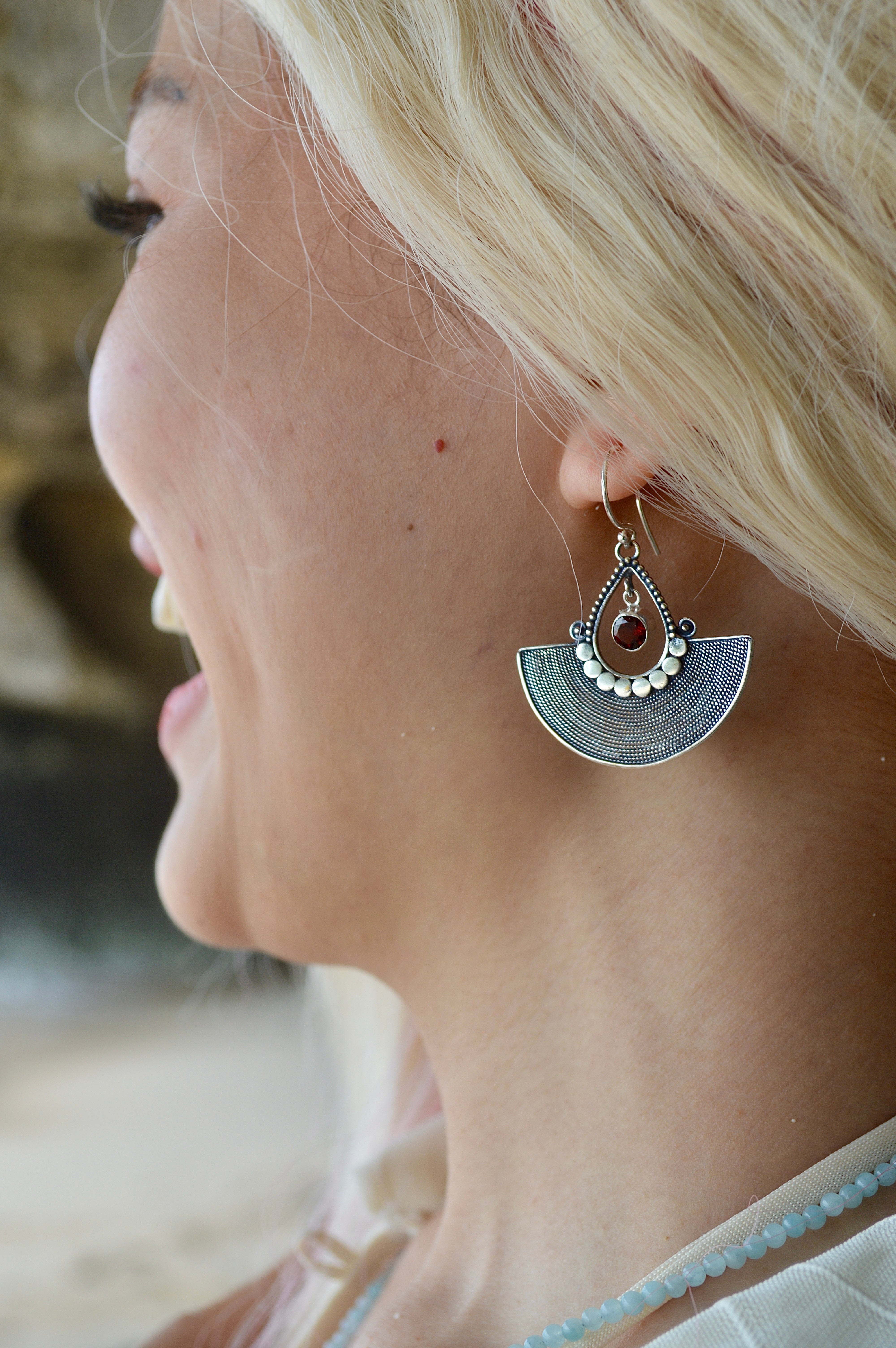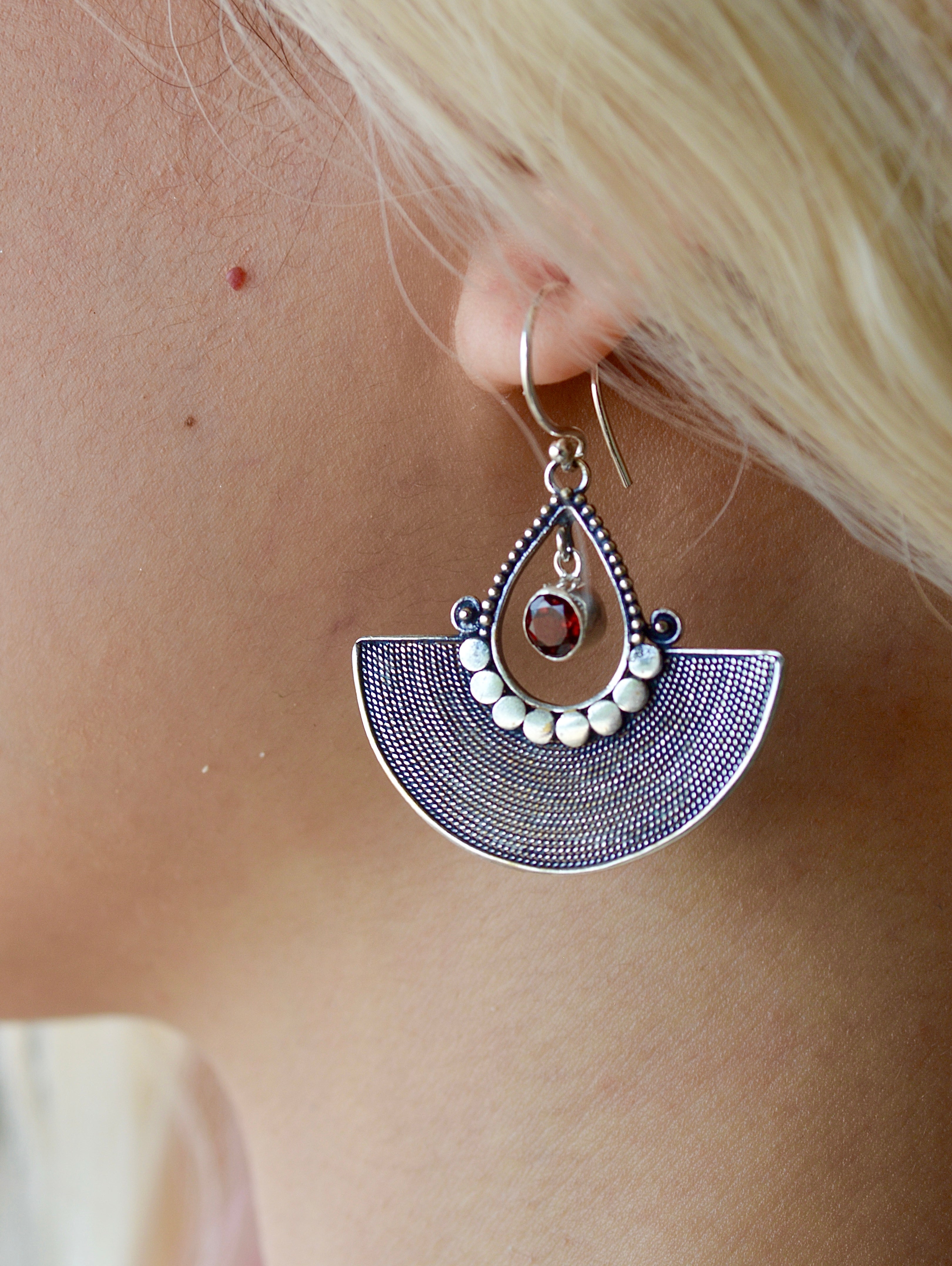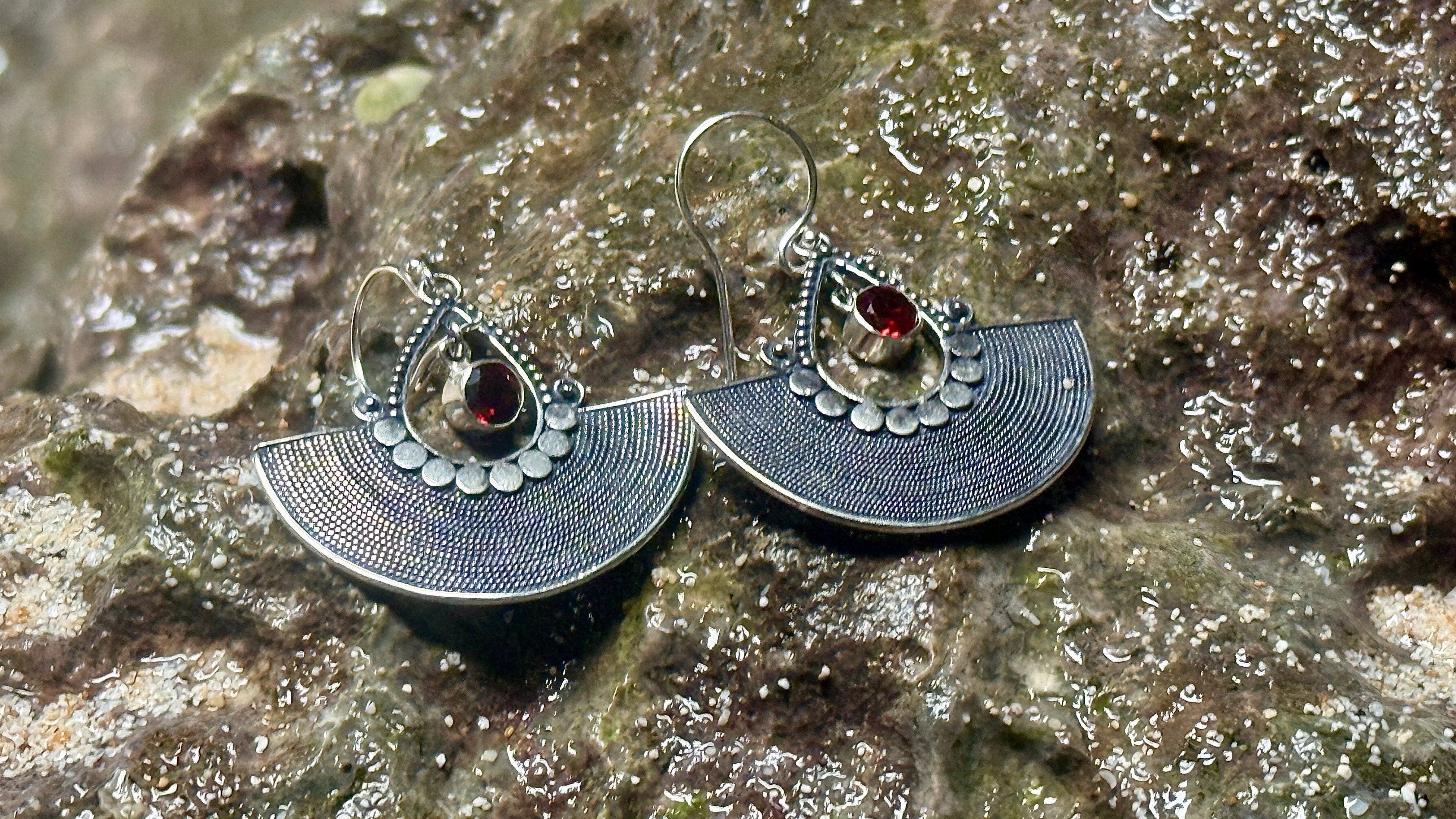 Fierce, feminine, and deeply grounding — our Garnet Cleo Earrings are crafted from premium 925 sterling silver and set with a natural Garnet gemstone. This stone sparks passion, strength, and confidence, paired with an elegant tribal-inspired fan design.