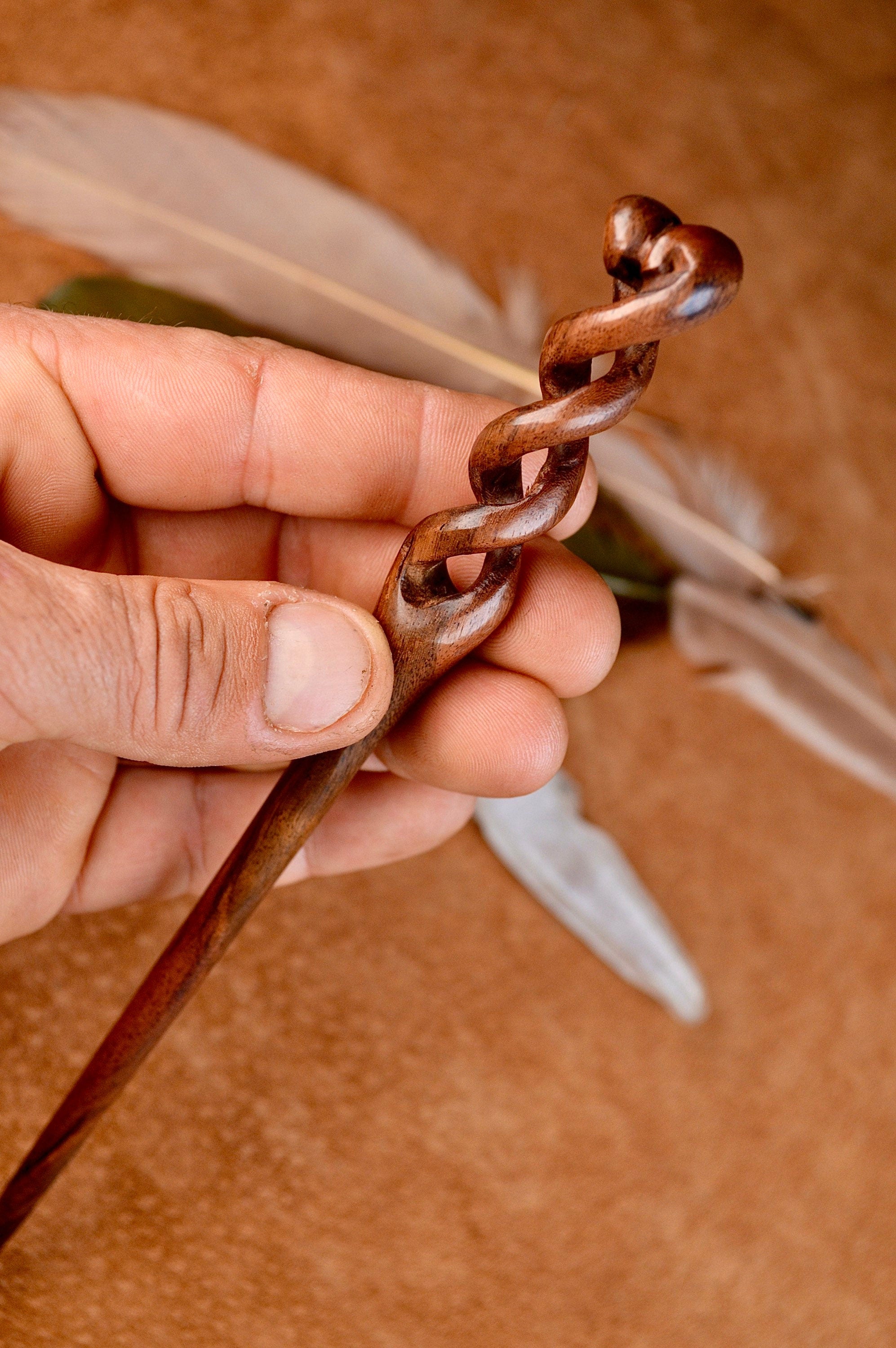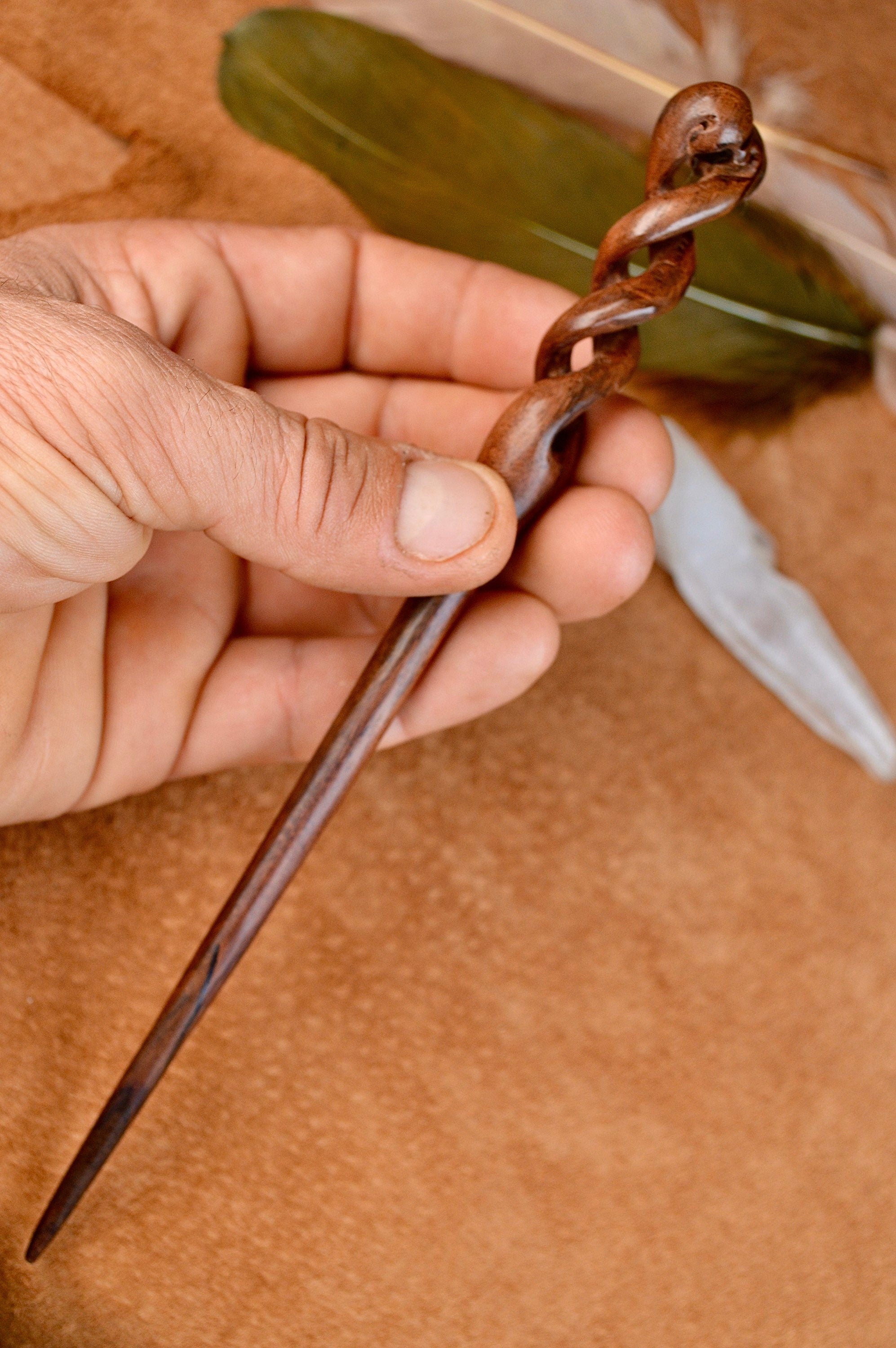 Whether you're attending a special occasion or simply want to add a touch of elegance to your everyday look, the Hand Carved Infinity Hair-Pin is the perfect accessory. Securely hold your hair in a stylish and effortless manner, while showcasing your appreciation for the beauty of infinity and artistry.