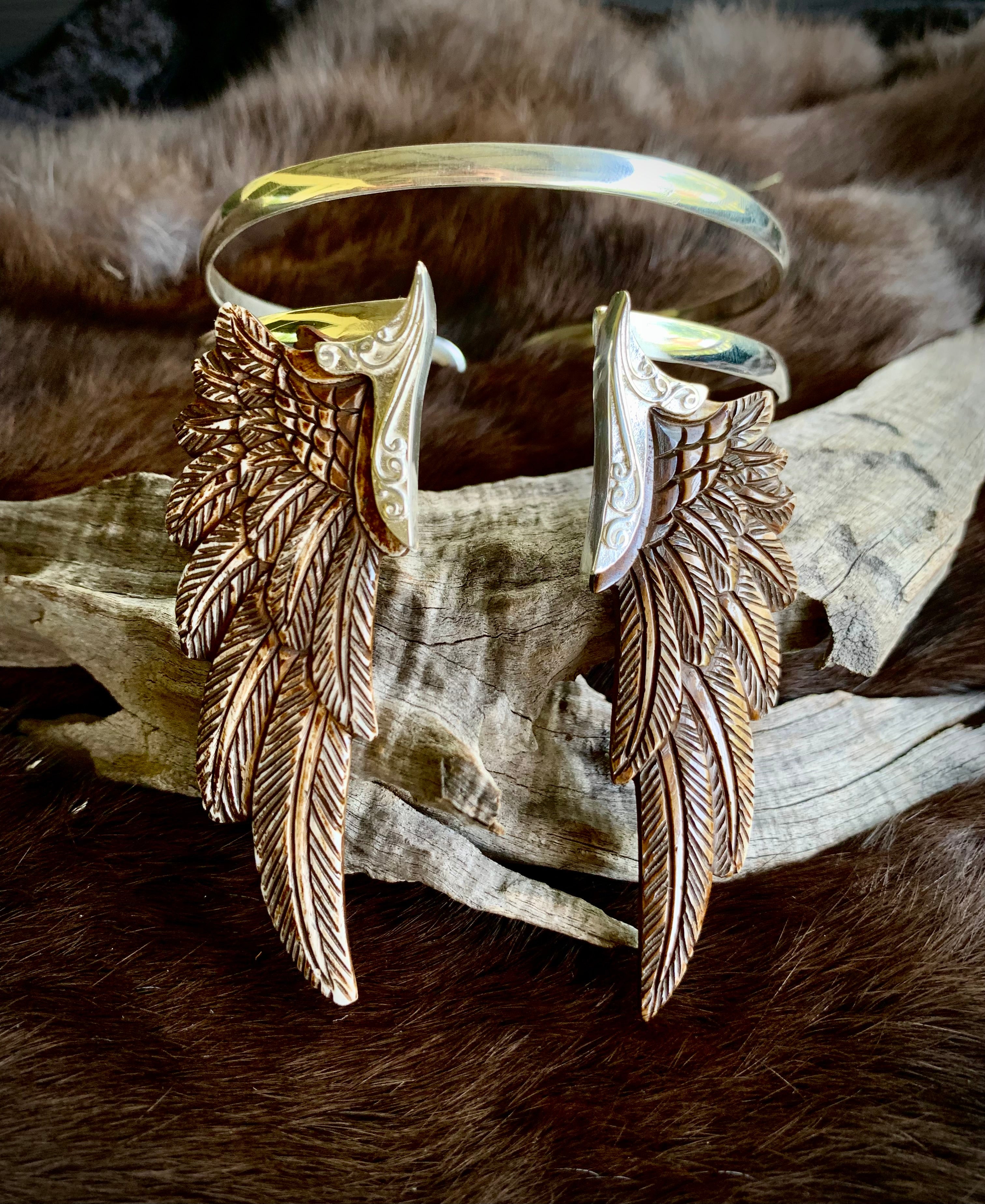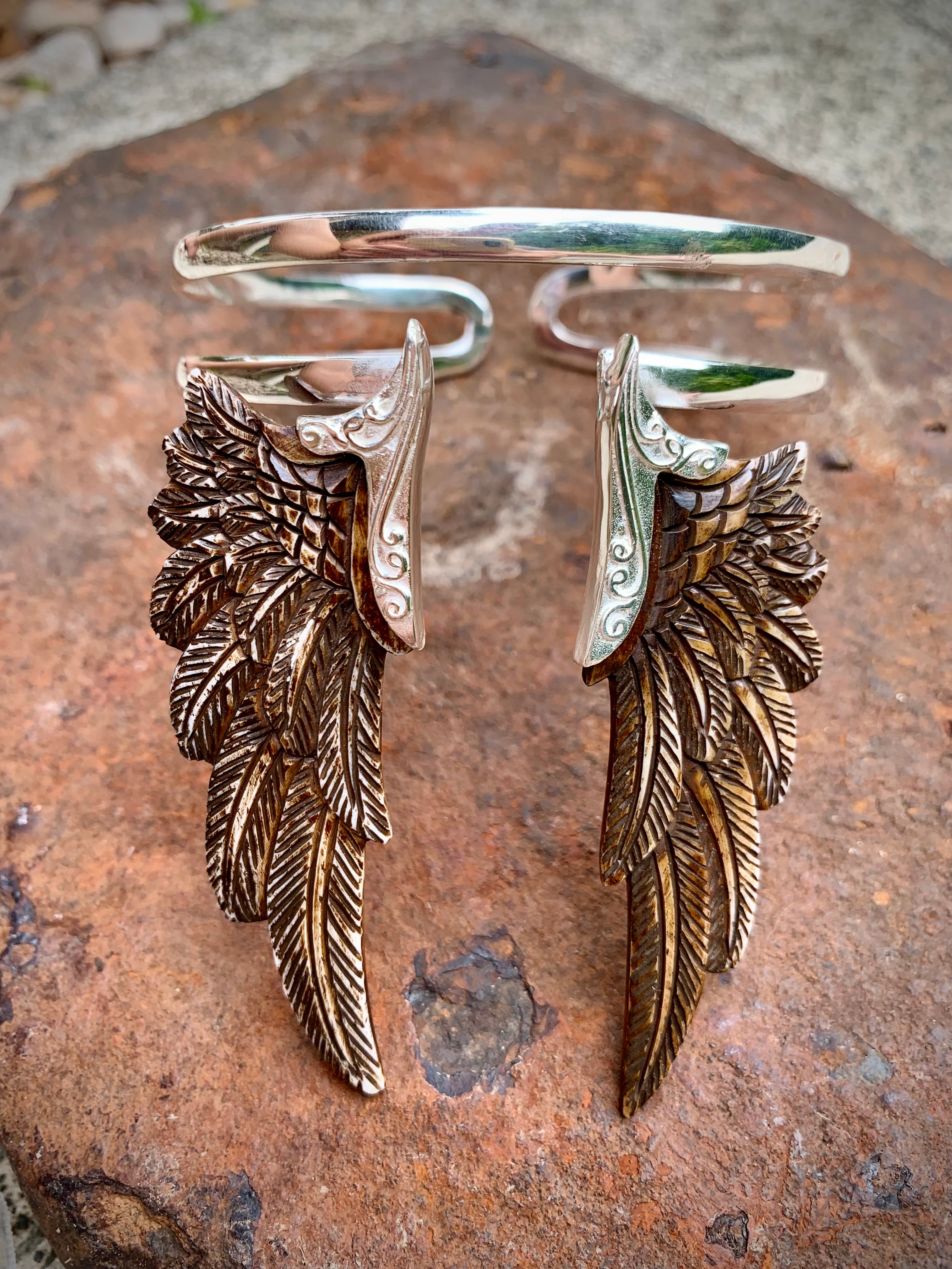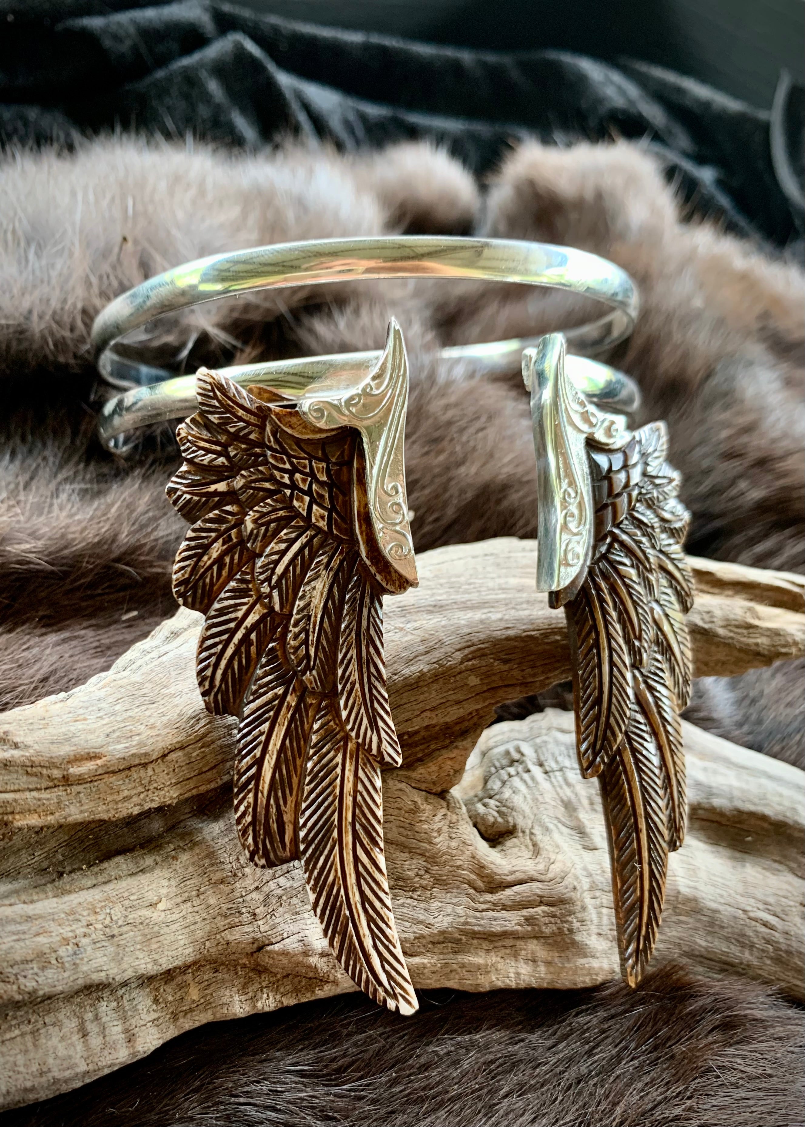 Angel Wing Arm Band- Dark Buffalo Bone & Silver