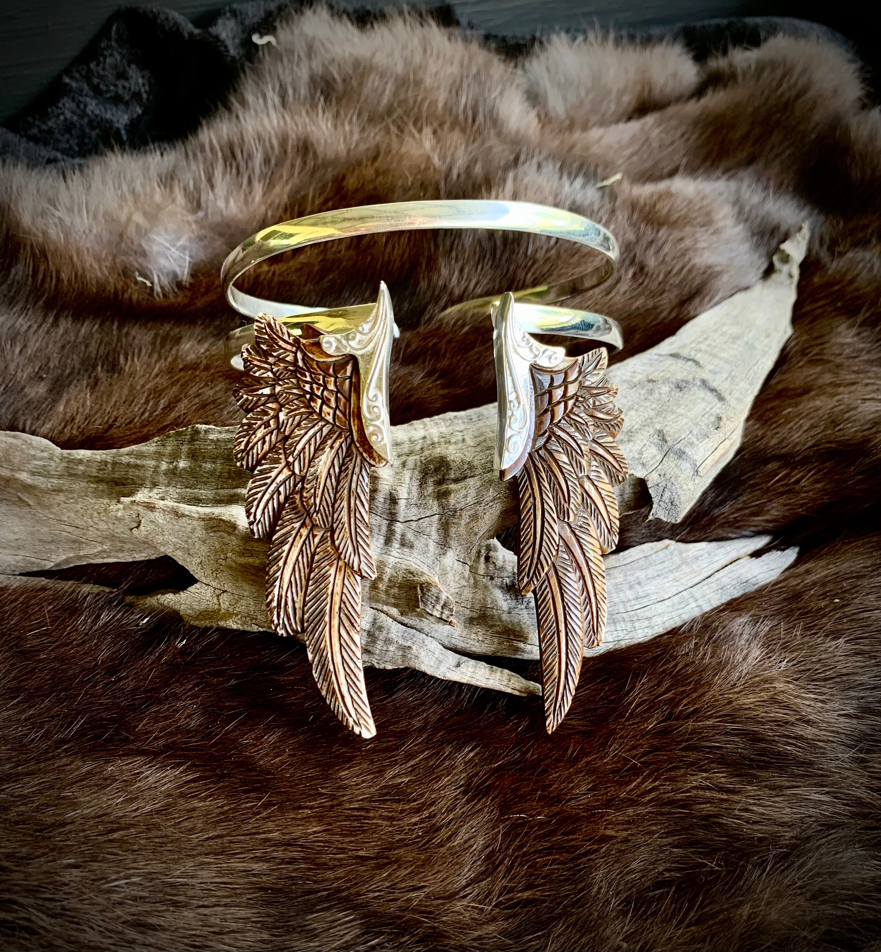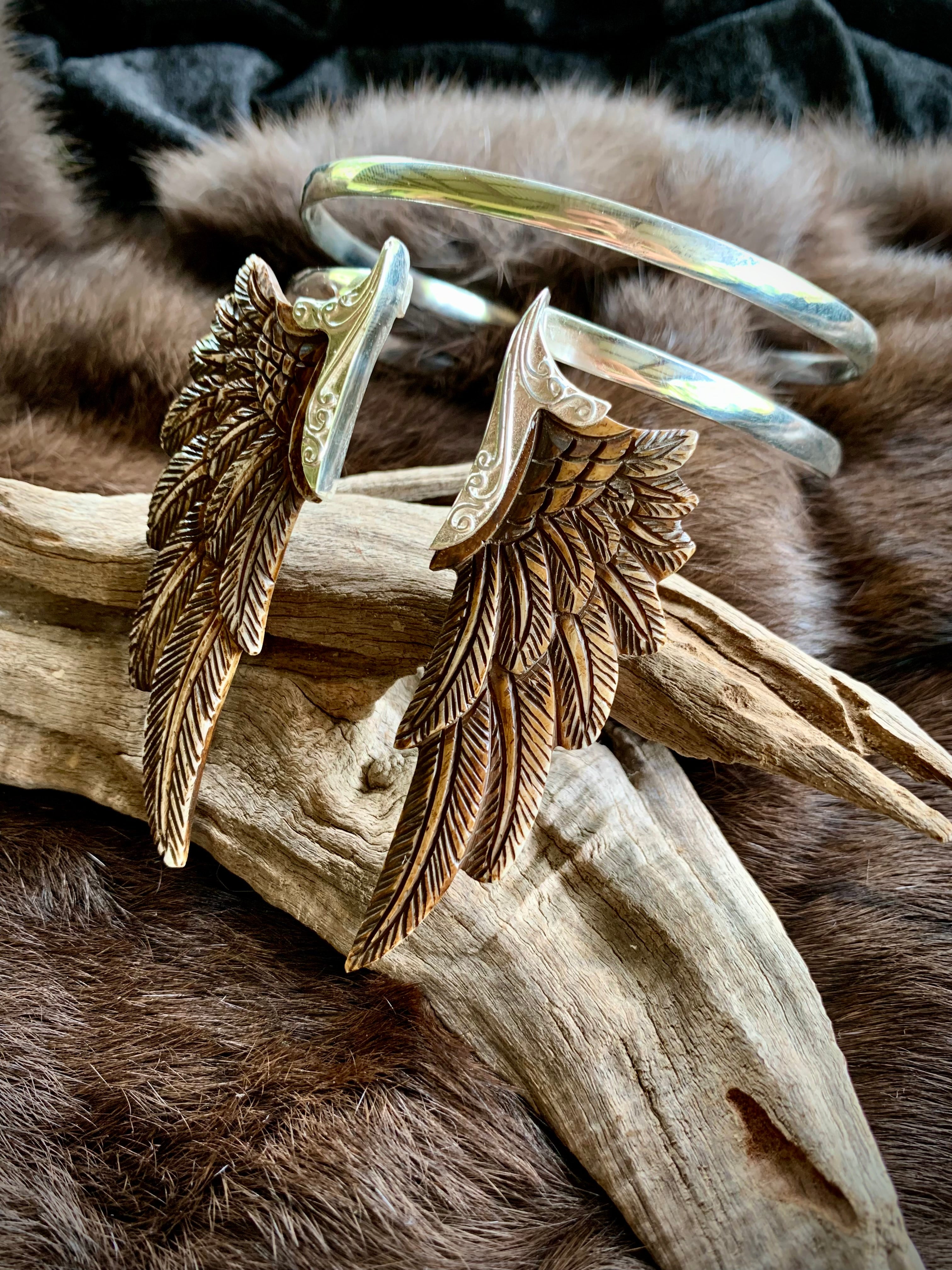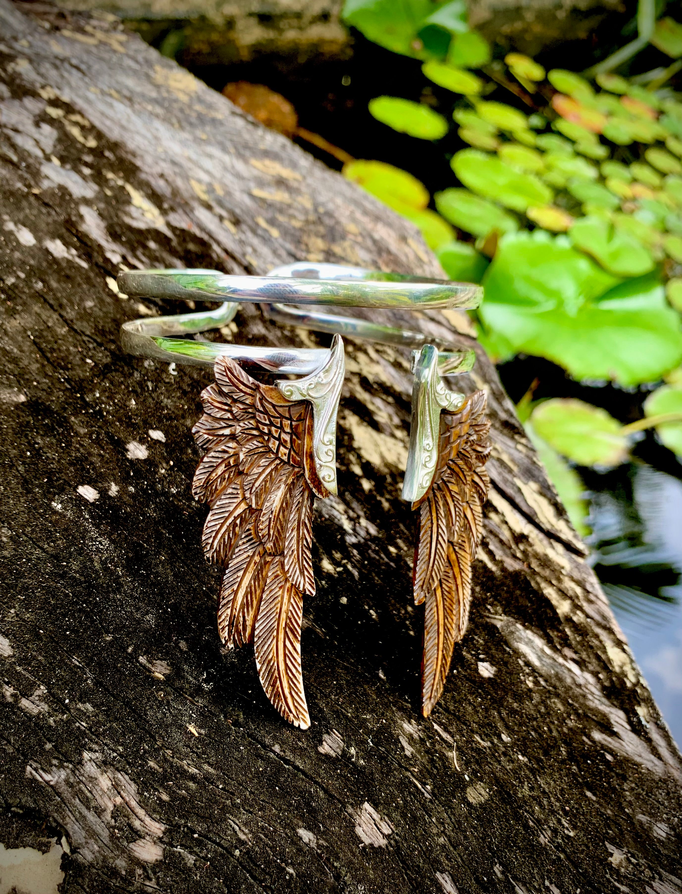 Angel Wing Arm Band- Dark Buffalo Bone & Silver