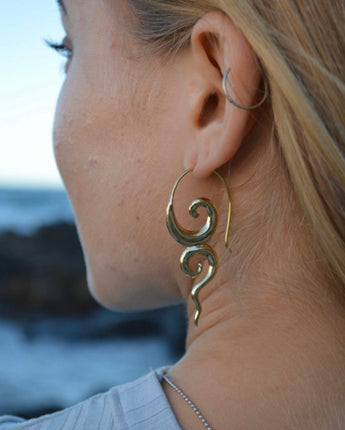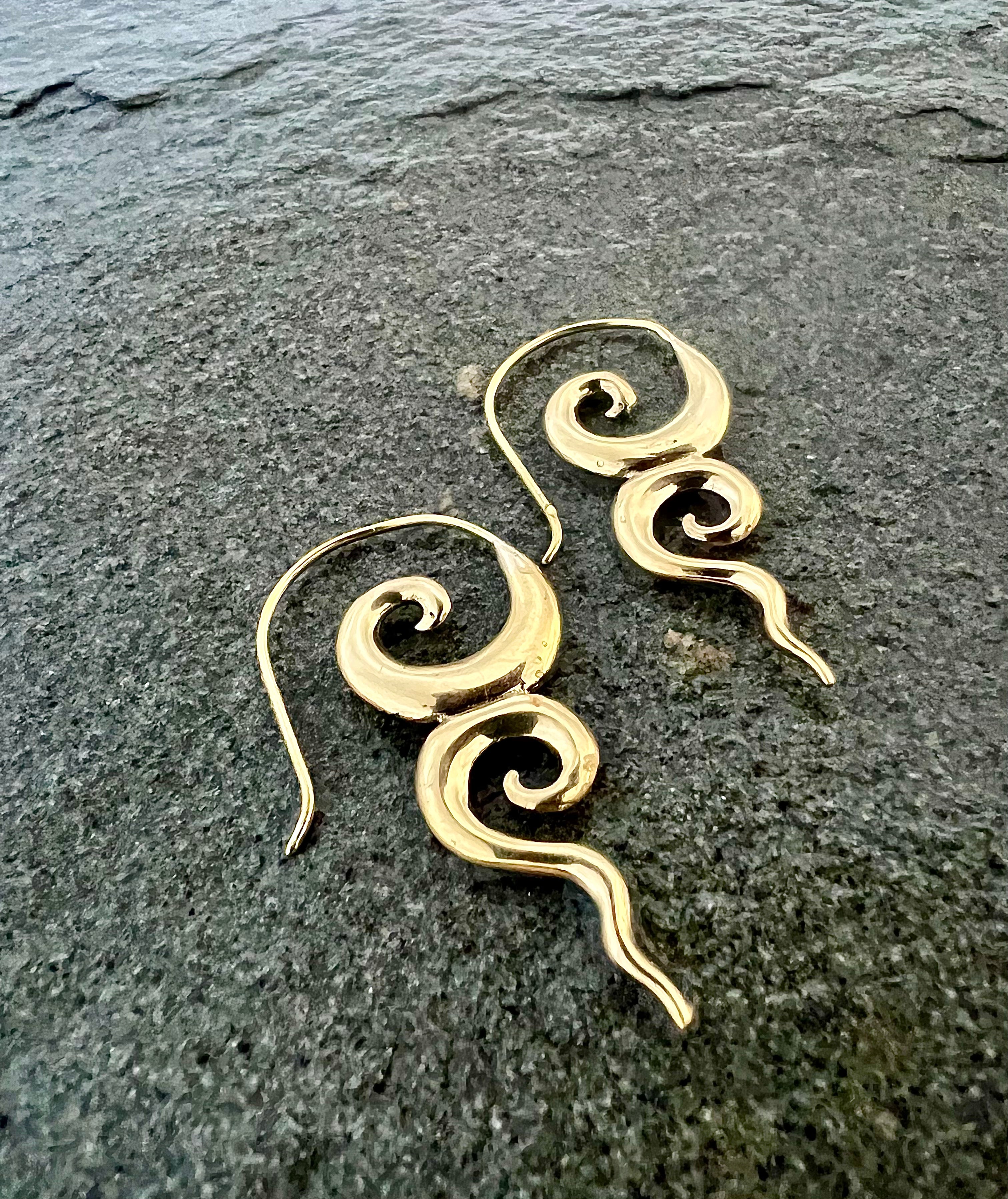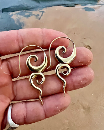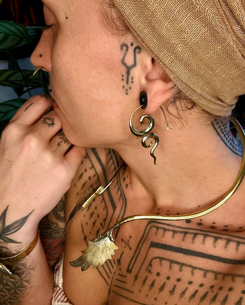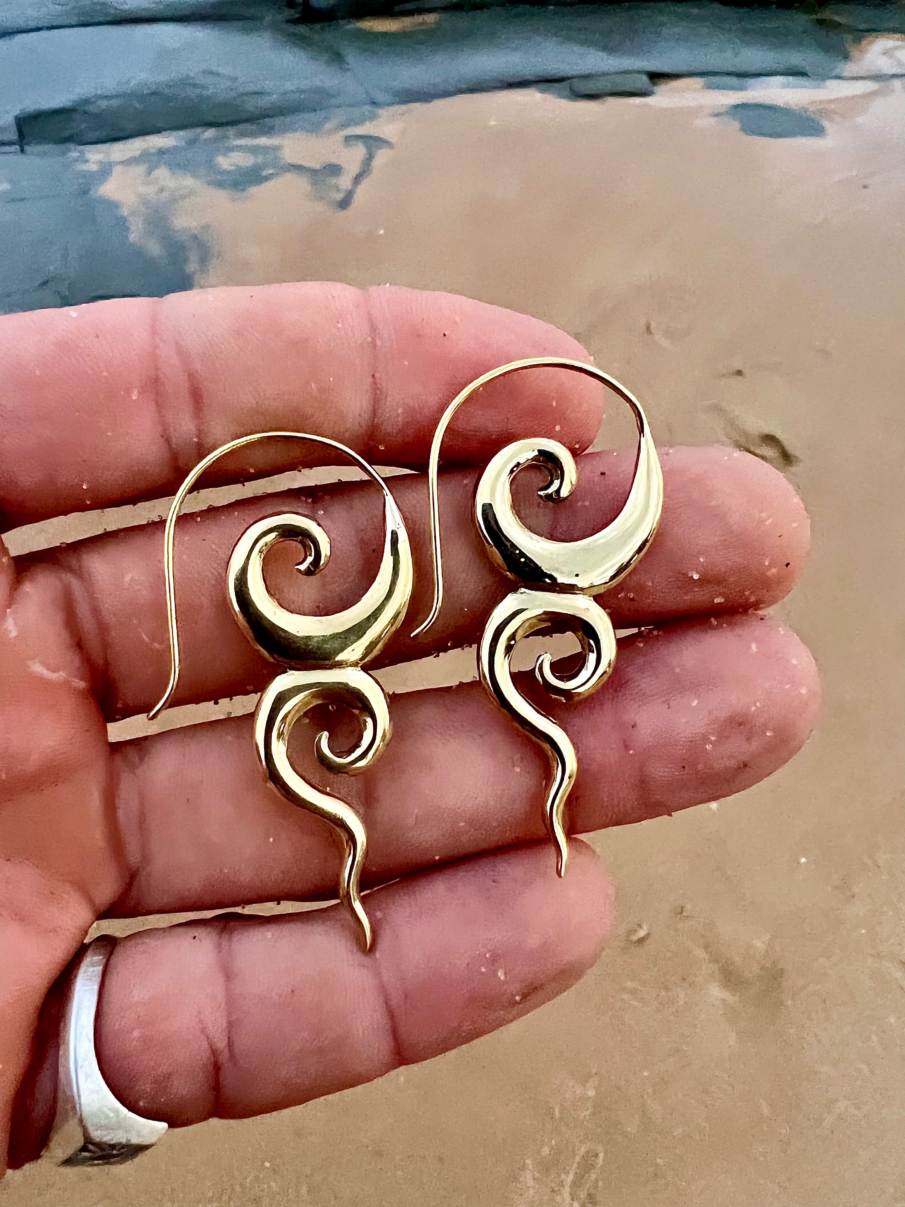 Our stunning brass River Goddess earrings are a must-have accessory for any lover of nature and mythology. Meticulously crafted with high-quality brass, these earrings feature intricate details that evoke the beauty and mystery of rivers and waterways. The warm, golden tone of the brass adds a touch of elegance and sophistication to the design, making them perfect for any occasion. With a comfortable hook design, these lightweight earrings are perfect for daily wear or special occasions. Elevate your look and embrace the mystery and wonder of the natural world with these stunning River Goddess earrings today!