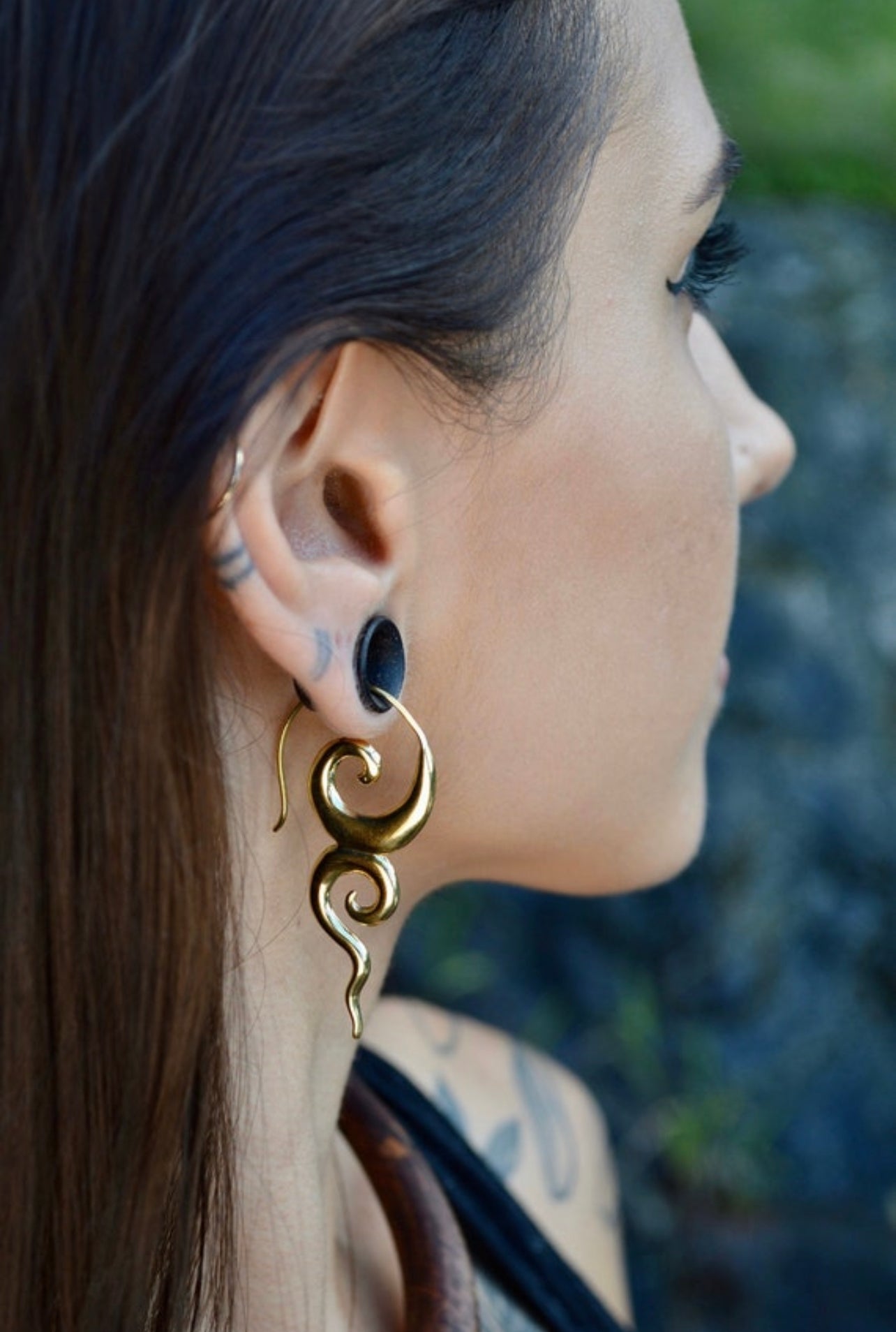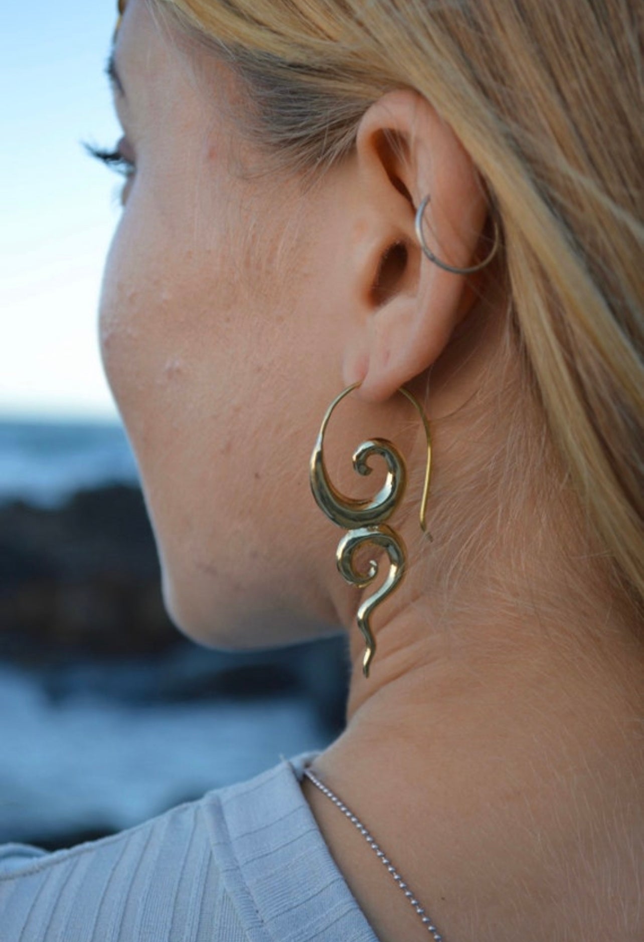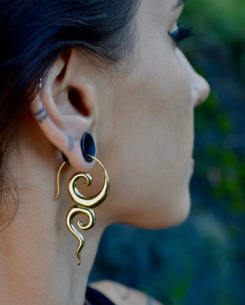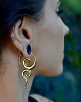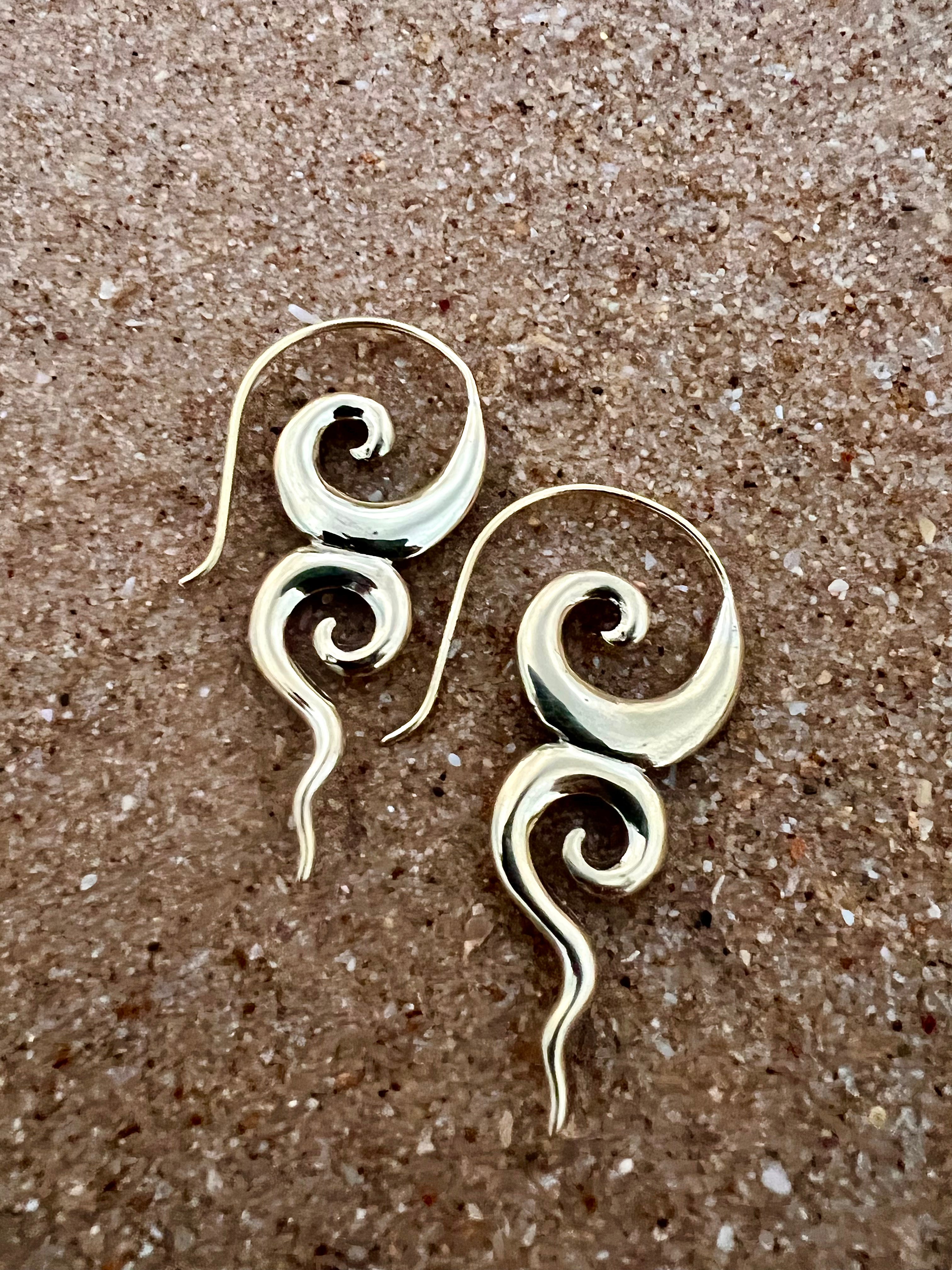 Our stunning brass River Goddess earrings are a must-have accessory for any lover of nature and mythology. Meticulously crafted with high-quality brass, these earrings feature intricate details that evoke the beauty and mystery of rivers and waterways. The warm, golden tone of the brass adds a touch of elegance and sophistication to the design, making them perfect for any occasion. With a comfortable hook design, these lightweight earrings are perfect for daily wear or special occasions. Elevate your look and embrace the mystery and wonder of the natural world with these stunning River Goddess earrings today!
