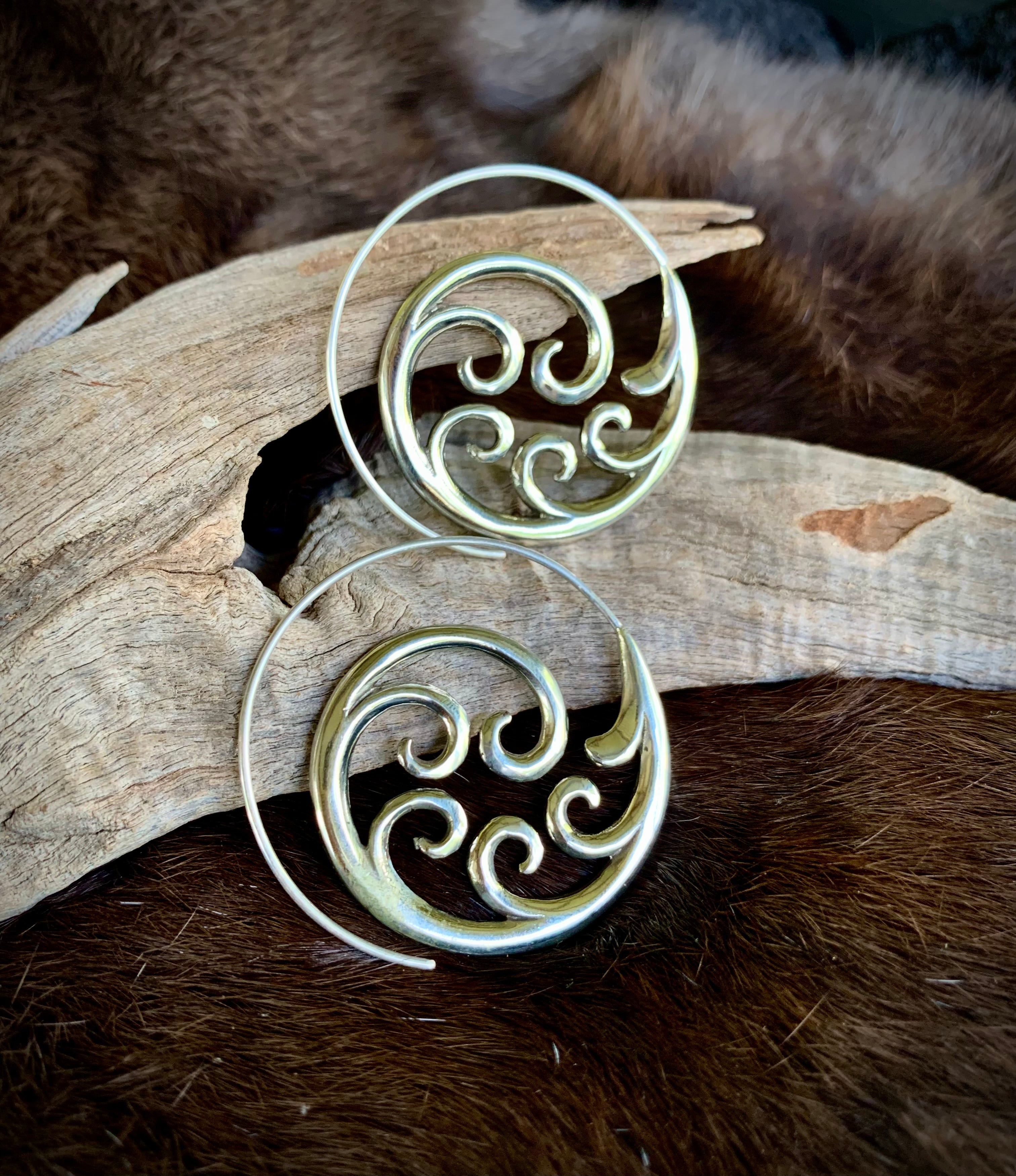 Inspired by the rhythm of the ocean, the Eternal Wave Earrings feature flowing wave forms hand-crafted in sterling silver and white brass. Their circular design symbolises continuity and movement, capturing the ever-changing yet constant nature of water.