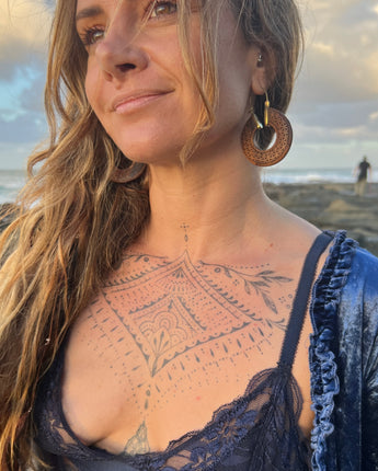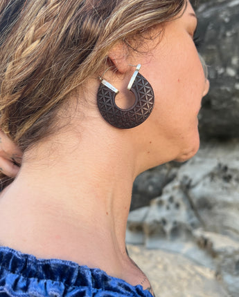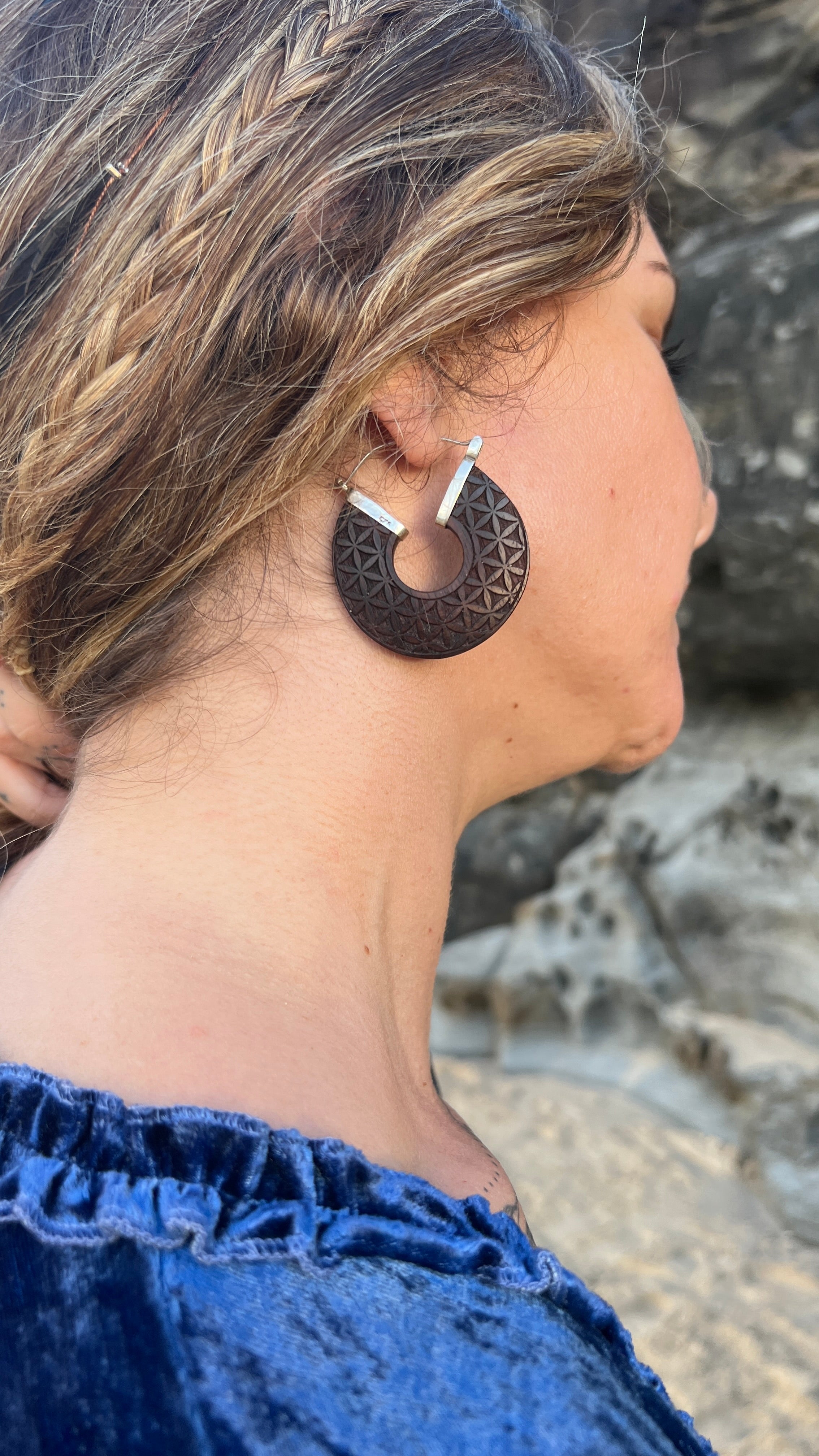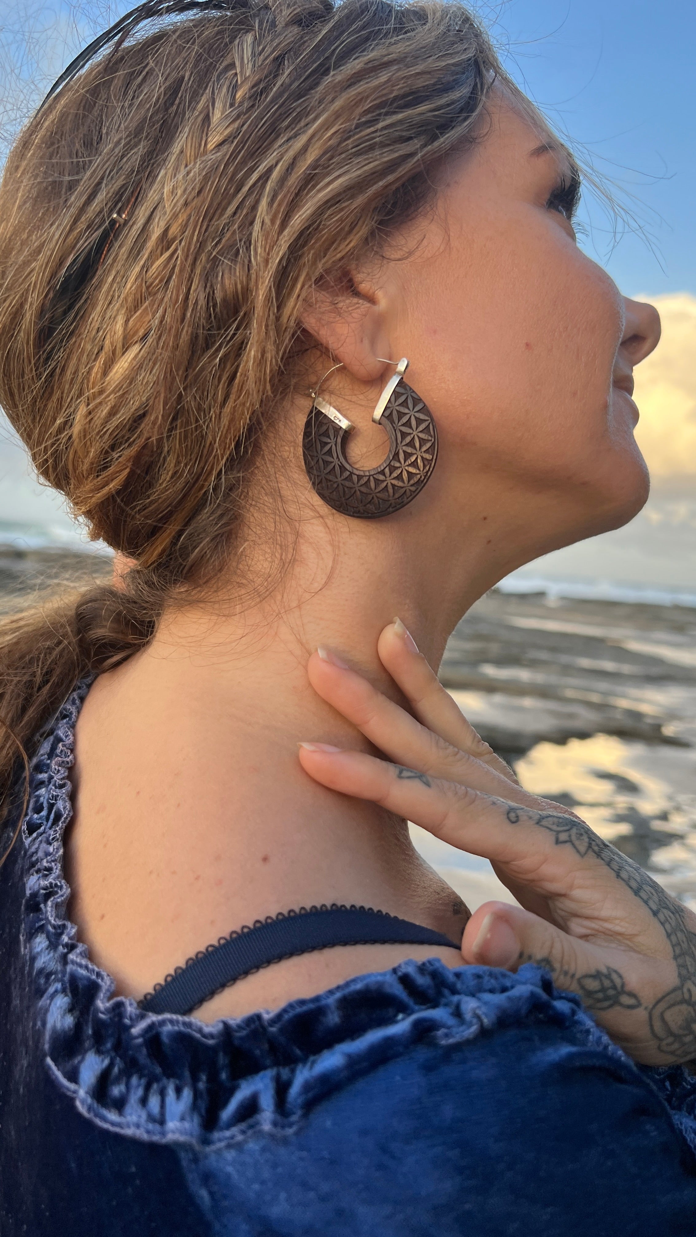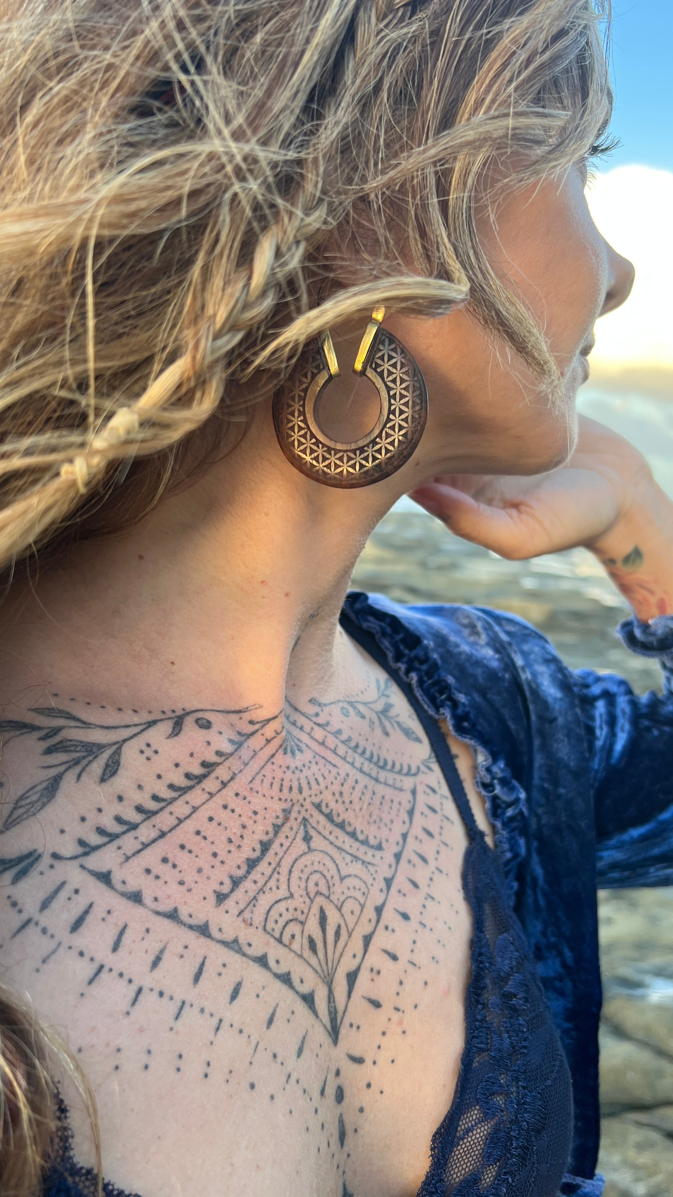 Introducing our stunning Hand Carved Wood and Brass Flower of Life Earrings, the perfect addition to your jewellery collection. These earrings are meticulously crafted from high-quality wood and nickel free brass to create a unique and intricate design that is sure to turn heads.