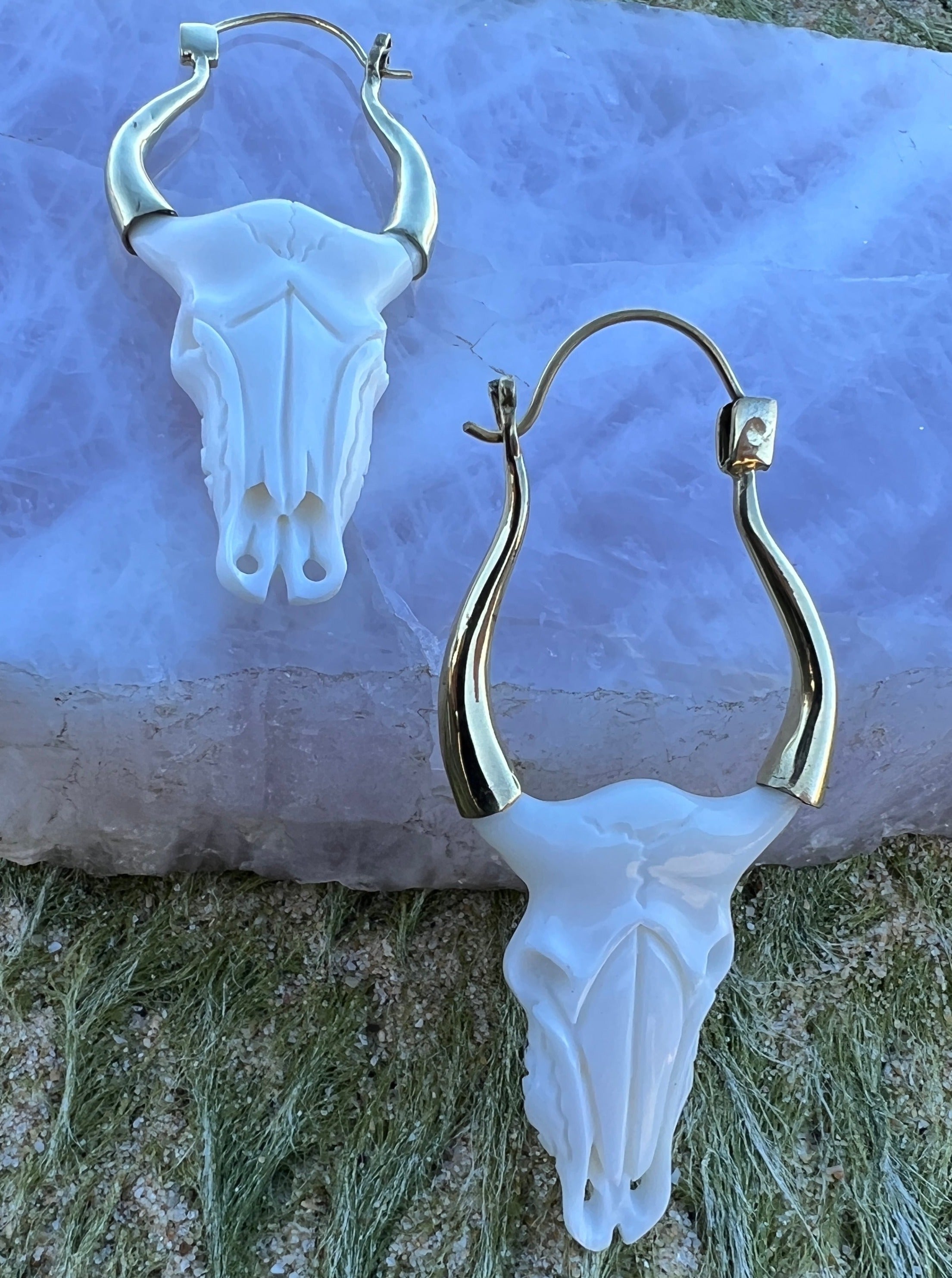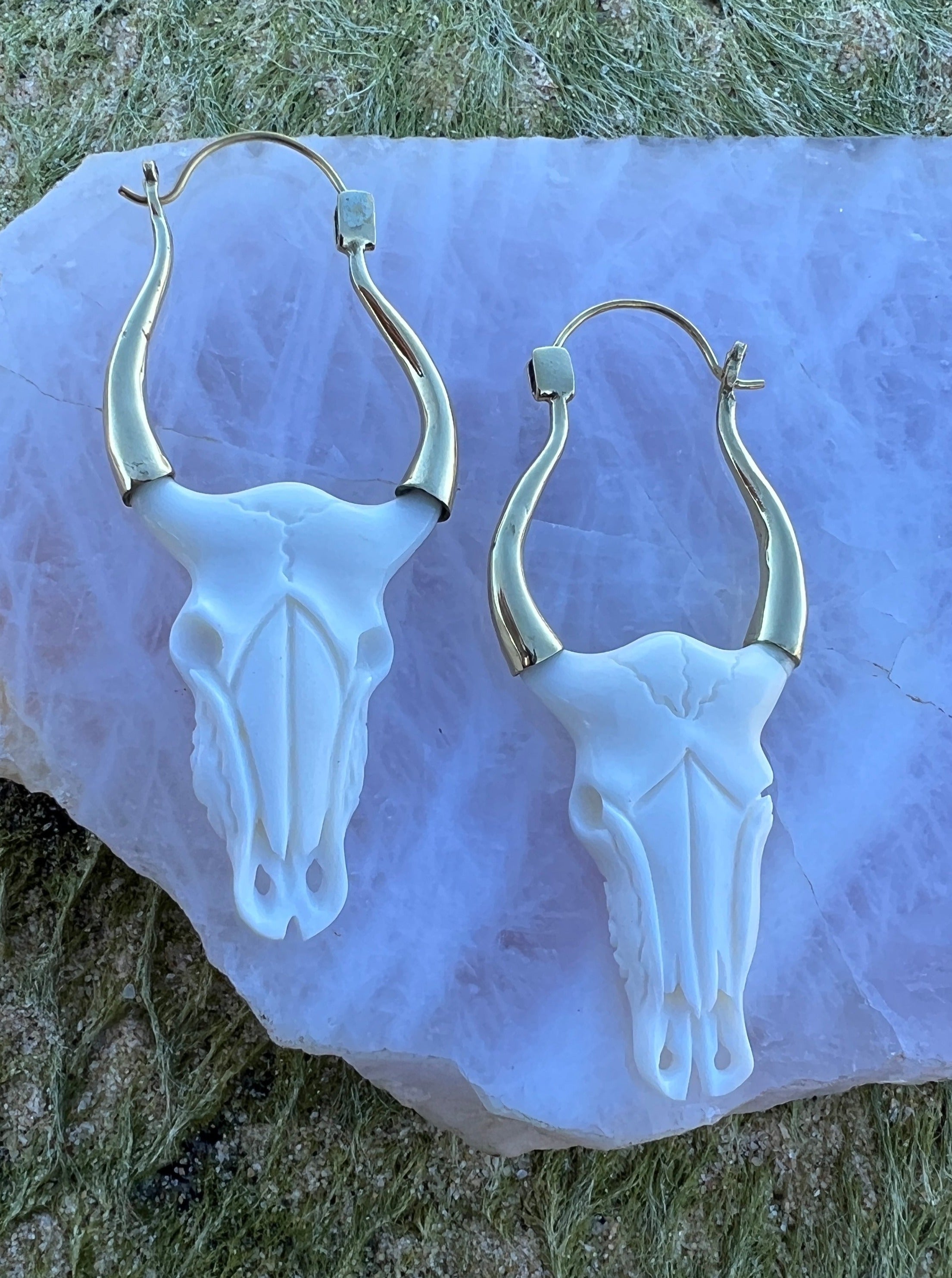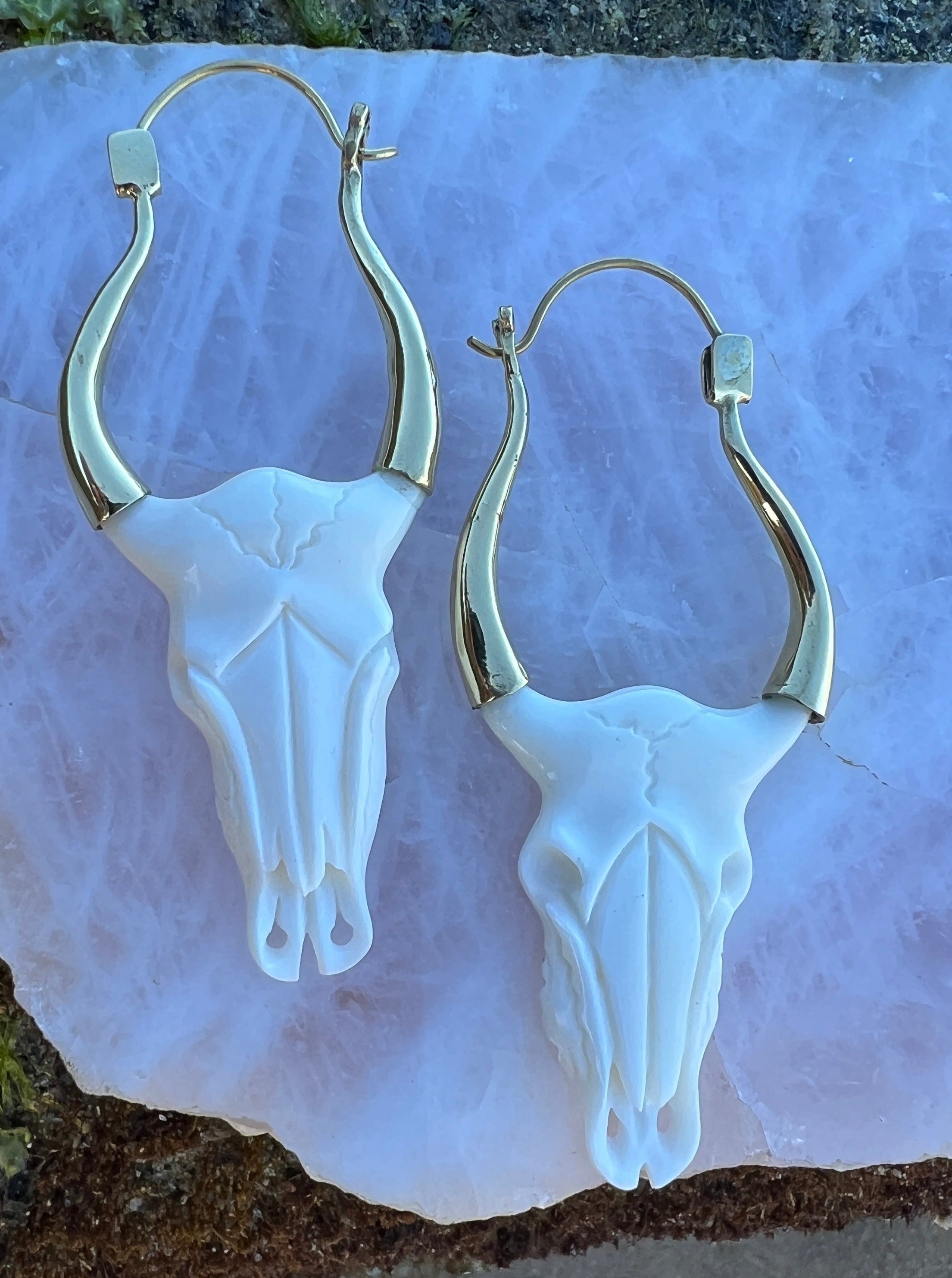 These stunning and unique designs were lovingly handcrafted from ethically sourced buffalo bone and high quality (nickel free) brass. These statement earrings were made for the bold at heart! Whether you're honouring yourself with a walk through nature or headed to a festival with friends, may these powerful pieces inspire you to be bold! The buffalo skull symbolises abundance, provision, strength, stability and prosperity. Hand carved with the intention of abundance.