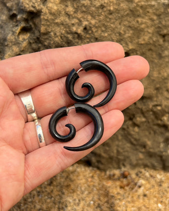 Hand carved from sacred buffalo horn and delicately made with rubber insert/ So the earrings do not loosen over time!!